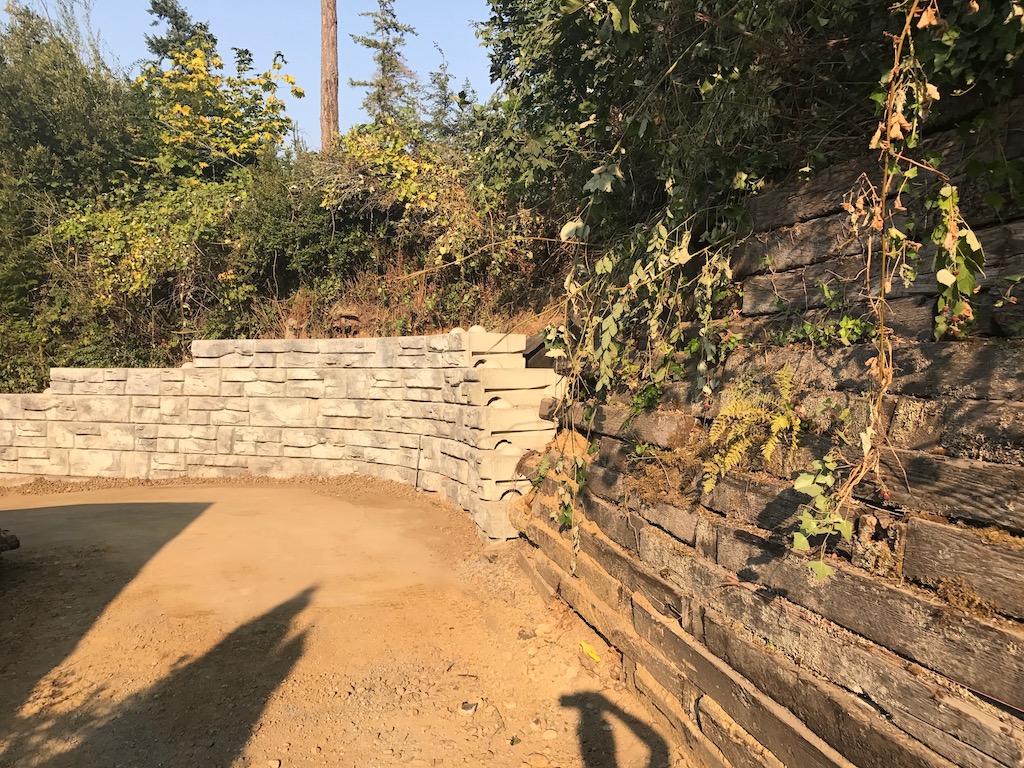 My next door neighbor has an easement along my property line shared with my other neighbor for his driveway. Thirty years ago a railroad tie bulkhead was built about 100ft long and 10ft at the highest. Well it is time to replace and luckily the bulkhead is not my responsibility. The Wall is going to cost about $80K including engineering, blocks, and installation. Best part is that I am the recipient of a bunch of free fill... not only that but the dirt work too. I have no idea how much they are dumping and grading but it's hundreds of yards giving me more useable property. :cool2:
