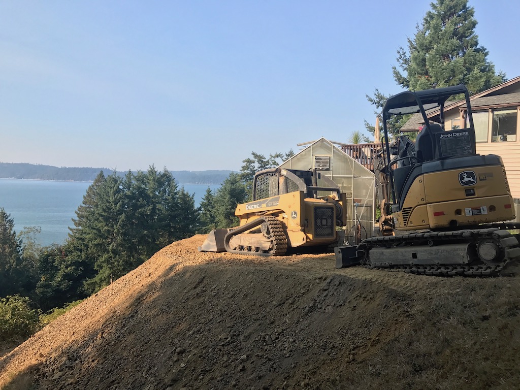 Here is the latest after today's action. I measured off the two backside corners of the greenhouse and I have gained 12ft and 10ft of flat land! Flat land is rare here. Will have to calculate the area when they are finished. I probably have about 90% of the fill that is coming my way now.That before picture you just posted of your greenhouse is shocking compared to what you have now!!!!!