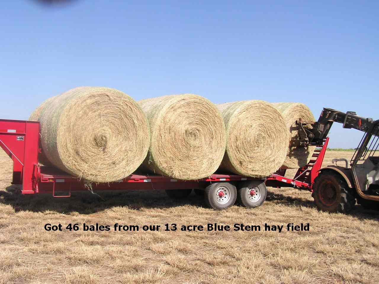 I used a 16' deckover with 6 big round bales on it, behind this 24' with 8 bales.