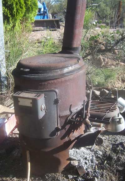 Here is my former stove that at 1 time I cooked on the top. Now used as a burn barrel. Sort of messy around it, but clean up is on the way. :laughing: At 1 time the stove parts were off an expensive wood stove. Temp control on door.