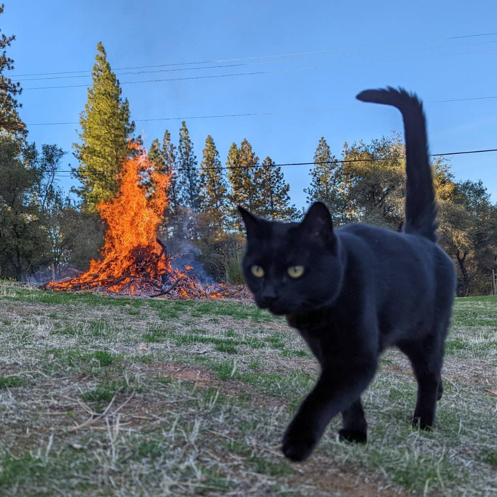 I just had my largest bonfire ever. Had a pile of old scrap wood, junk pallets, busted shipping crates, old wooden furniture... the pile kept growing all year but the weather and my schedule didn't cooperate. It was hot and dry all summer and making a massive fire didn't feel right.