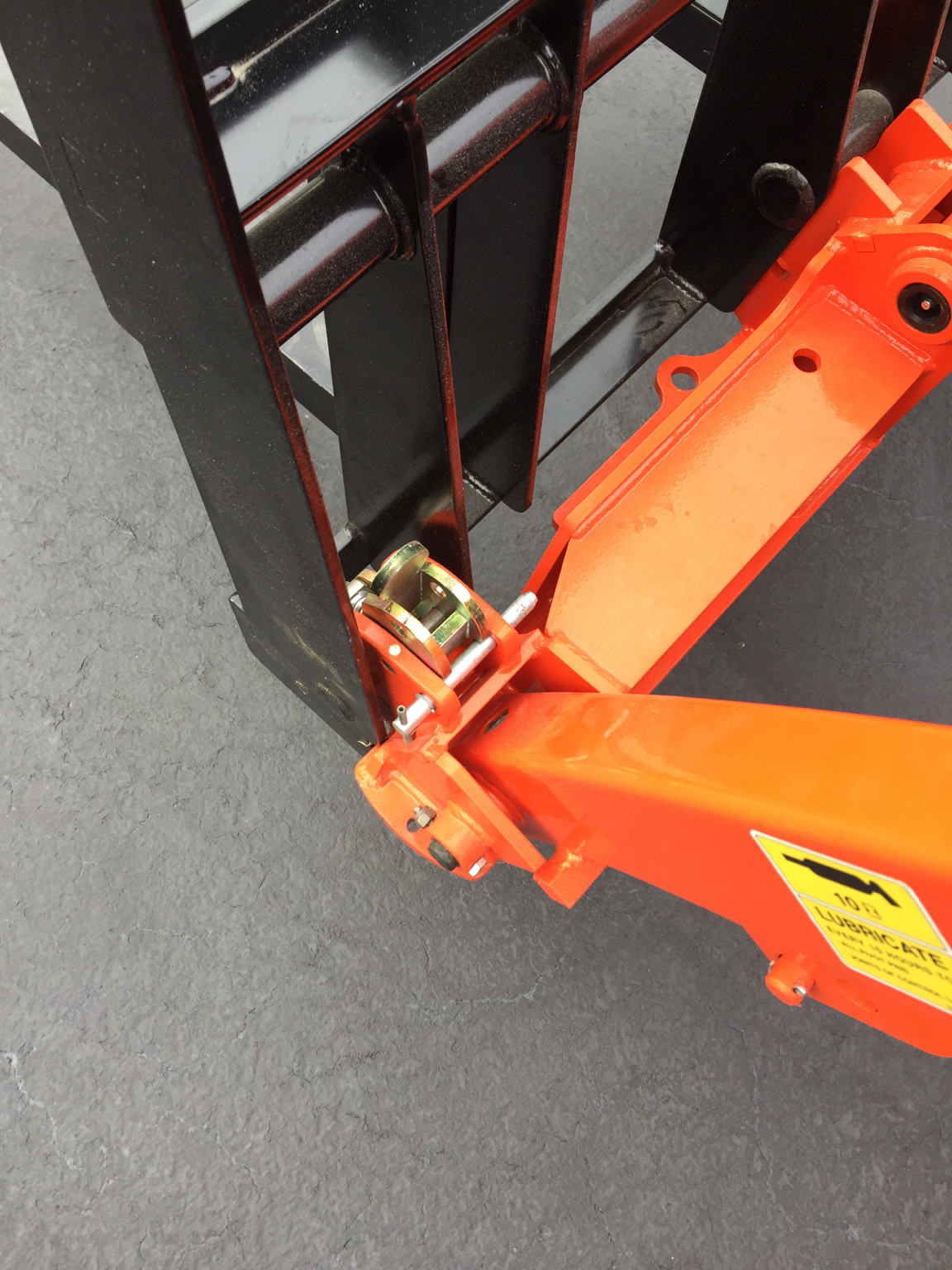 I store my loader attachments on a hand-built shelf system, and reach up with the Q/A and pick what I want. What I like is the positive engagement to lift the attachment off the shelf as Jery's Q/A has hooks on top, where the skidsteer has an angle along the top. Again, the main thing is the gain of capacity. Jery's forks weigh 30#, I think. Kubota s weigh 80# each.