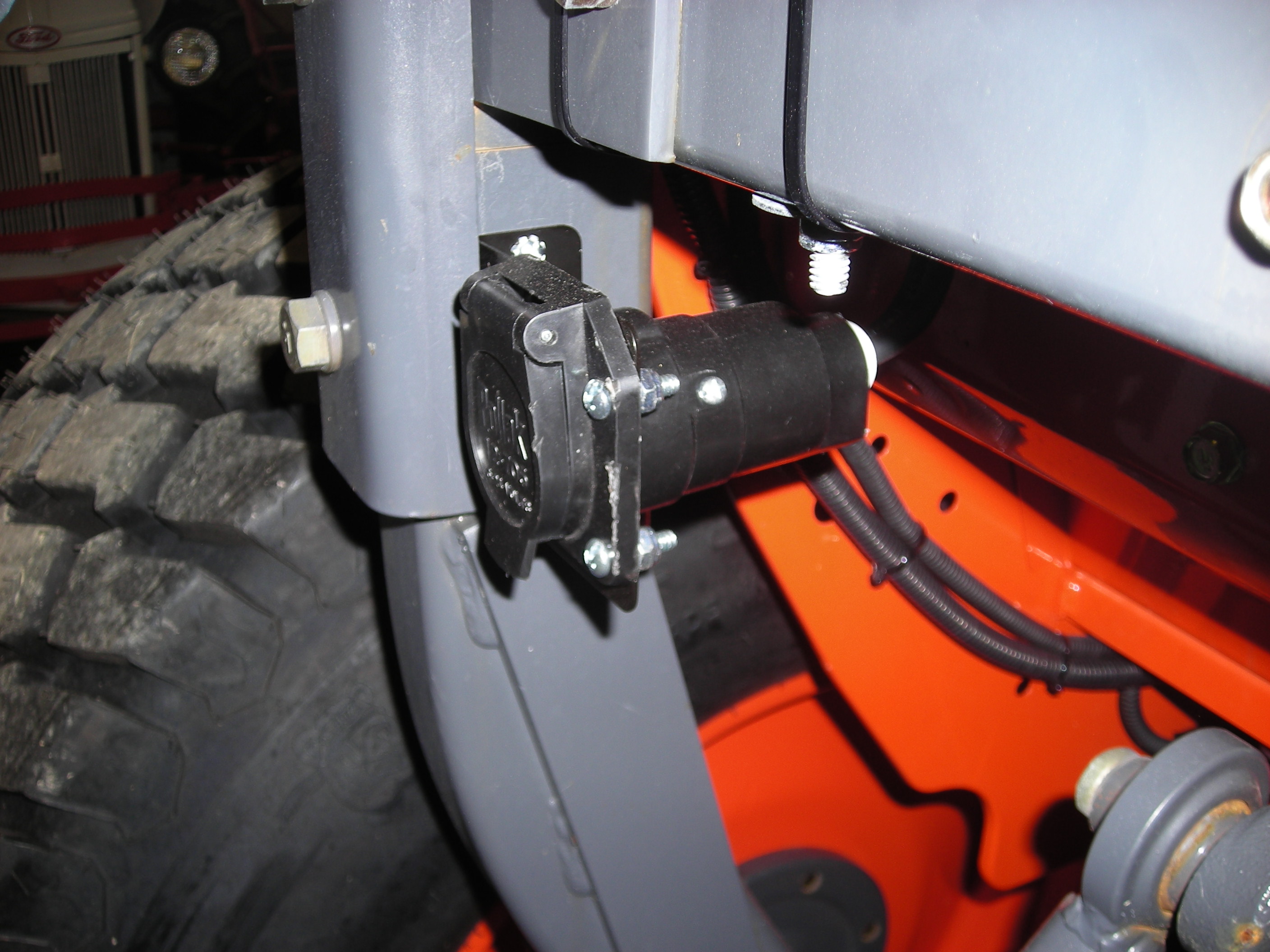 Has anyone ever installed a trailer plug on there bx24. I'm thinking of adding one but not sure if I should go with a 4 pin flat or a 7 pin. I would use it when I'm pulling my 2 trailers, also if I go with 7 pin I couild use it to power some rear mounted atachments. If anyone installed one on the nx where did you mount it?