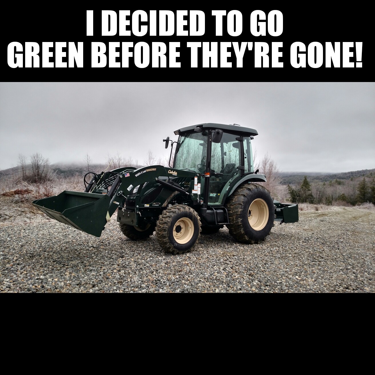 I had to jump on the deal... I couldn't have come close to it without the clearance sale. Sorry they are ditching the tractor line. Its a TYM but sure as heck glad its green. Most expensive thing Ive ever bought outside of real estate. My road is already better and if Spring (what we had in February) every comes back it will be it top shape.