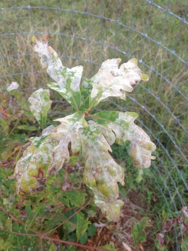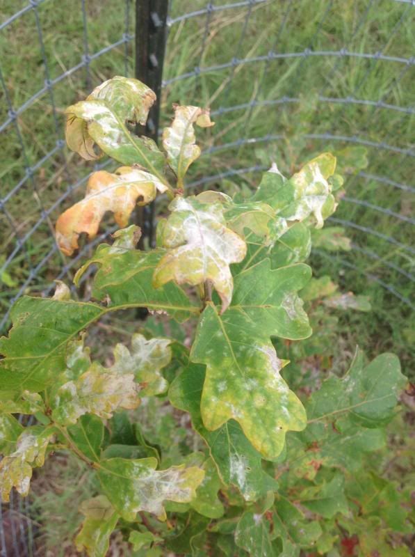 I posted earlier with this problem, but it has gotten worse and I would really like to get a definitive diagnosis of my problem. I have 32 white oak trees planted up the driveway of my future home. This is their second summer and they were doing really well until about July. They began to develop these lesions. Any ideas or suggestions? Is there a lab that would be able to perform testing, culture, or microscopic evaluation of the leves nd determine the cause?