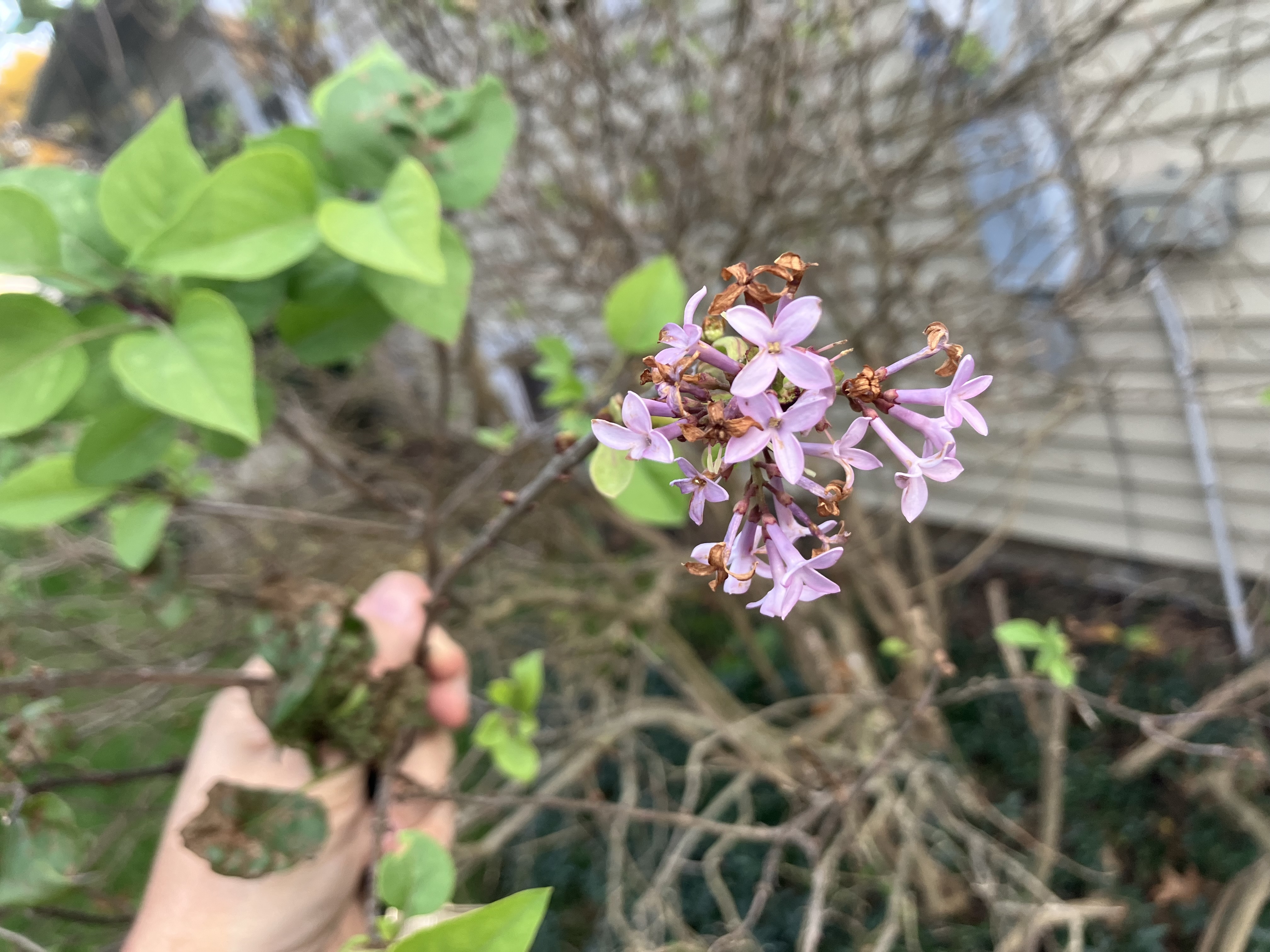 I just smushed one on the side of the car when I got out at home yesterday. Then noticed another lilac bloom! November 6!