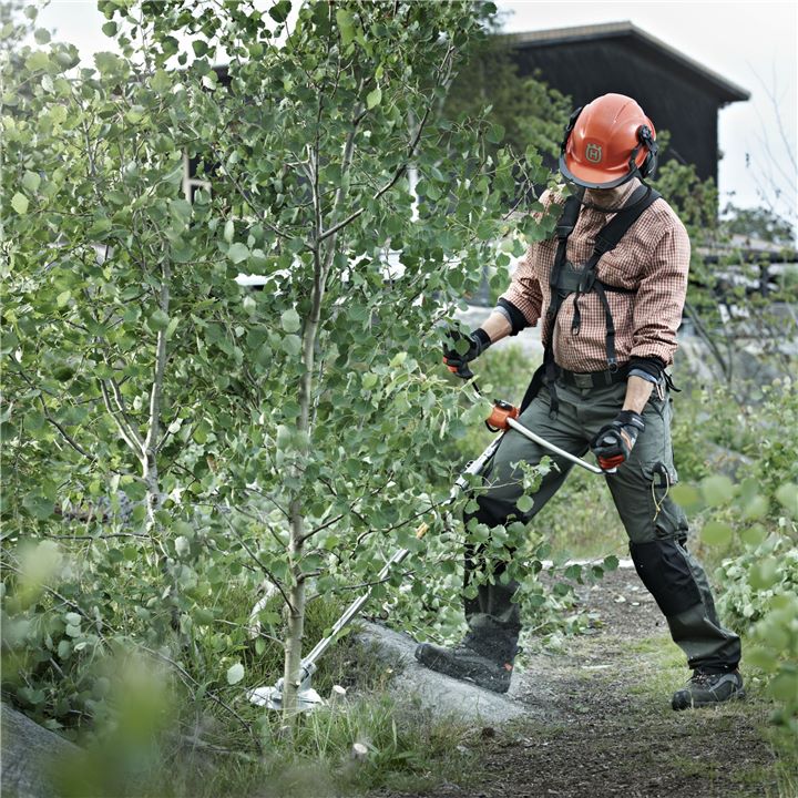 I use the least aggressive 4 sided "grass" blade and cut up brush (and small trees) up to about 2" (and sometimes more, with a few whacks). The brushcutter blades can handle even more. Then the landscape is free & clear and open to get at the bigger stuff with the chain saw.