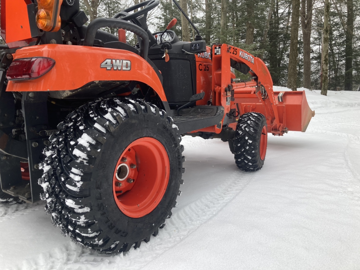 We replaced the original turf tires on our little Kubota BX2370-1 with the new Carlisle Versa Turfs. My very initial impressions are that deep snow traction is improved and compacted snow traction is about the same. They do look cool. I’ll try to chime in in about a year with some more detailed feedback.