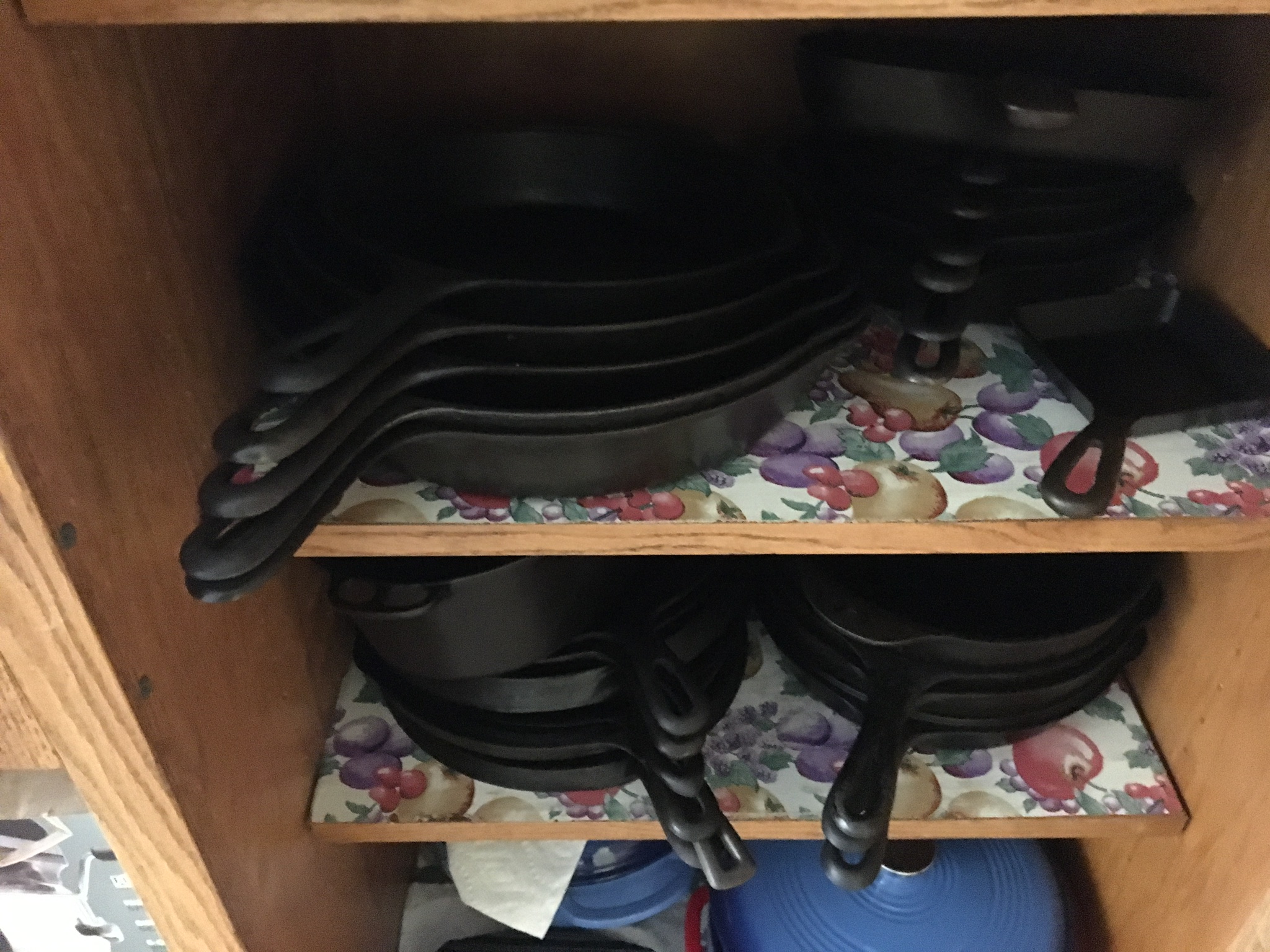 This is about half my collection of bare cast iron. All my cast iron is Wagner and Griswold, most nearing 100 years old. All as good as new.