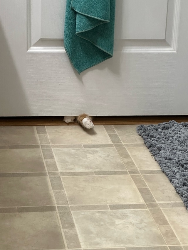 Always good to have string or cat toy near the bathroom door.Ah yes, the attempted use of a bathroom without inviting the cat in to observe/inspect