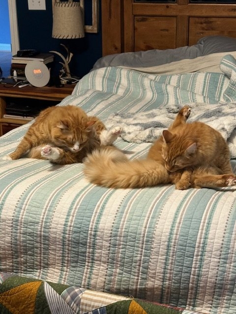 It cracks me up when a large cat purrs, rubs, then PLOPS over with the customary THUD! :ROFLMAO: