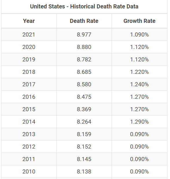 Do you have any thoughts on the longer term overall death rate data? In the grand scheme of things, 2020 doesn't seem out of line to me.