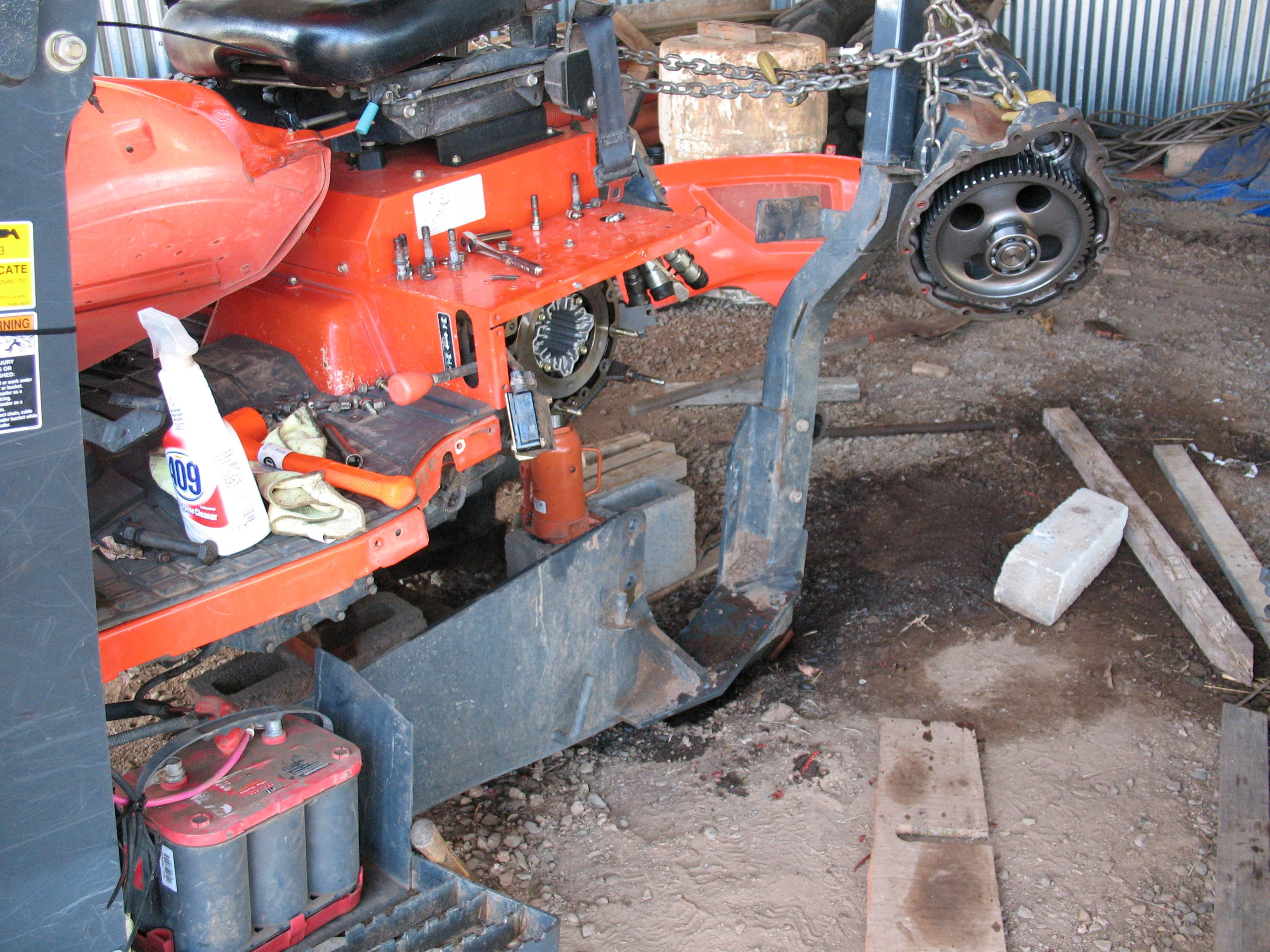 Had to replace Brake Case Housing for second time on my L-39 Kubota. While using boxblade I broke the pad eye on the housing where side link pins up. Being my second time it was a little easier this time. The L-39 has a heavy duty frame that must be unbolted and lowered down in order to first take axel housing off.Then you take brake housing off. What I did different this time was leave 1 bolt on the front side of the frame on each side and lowered frame down with a jack. Lucky my shed has a dirt and gravel floor because I had to dig down a little bit to get frame low enough. This made raising the frame easier going back up and lining up the mounting bolts.I will post pictures later