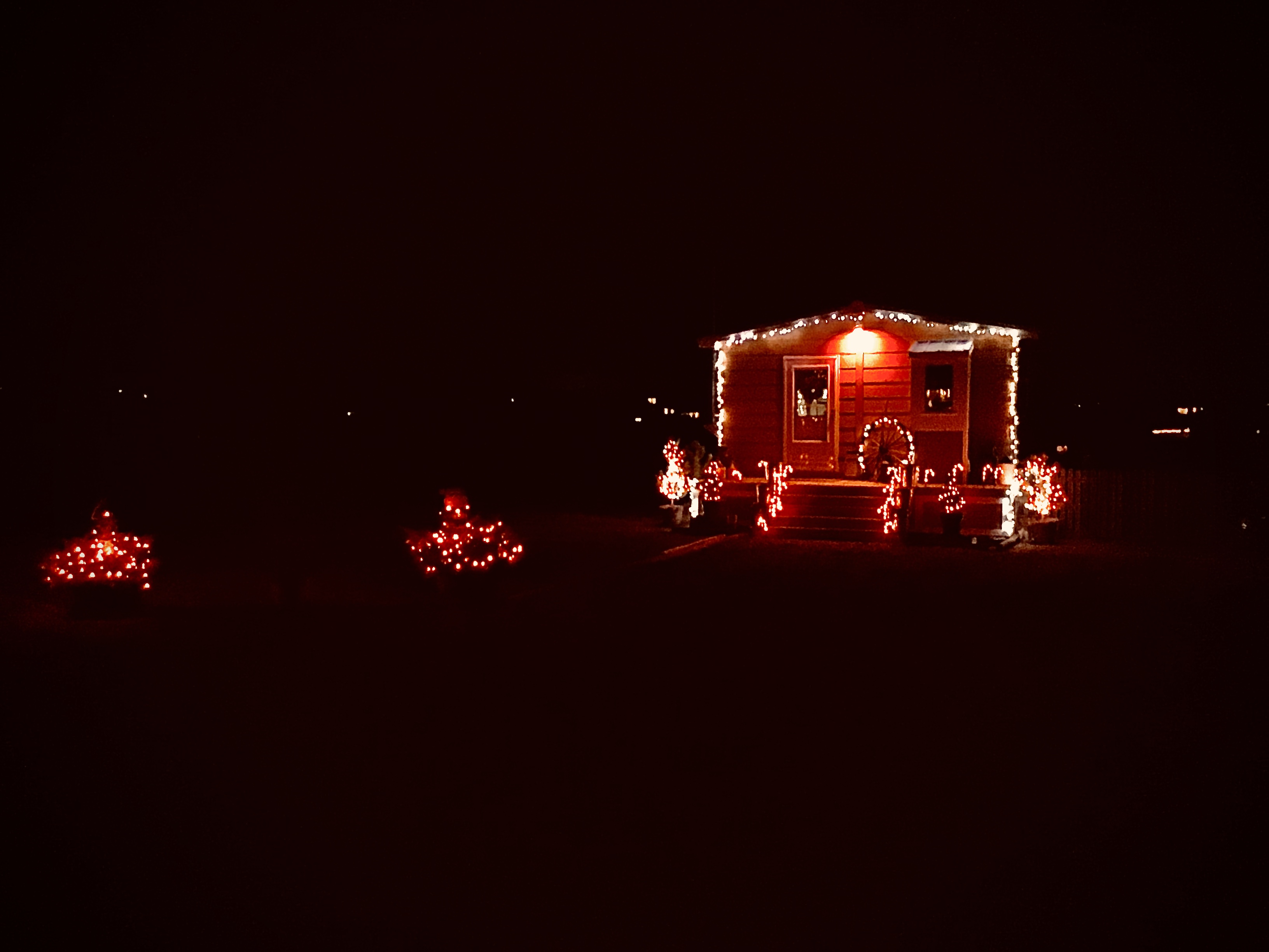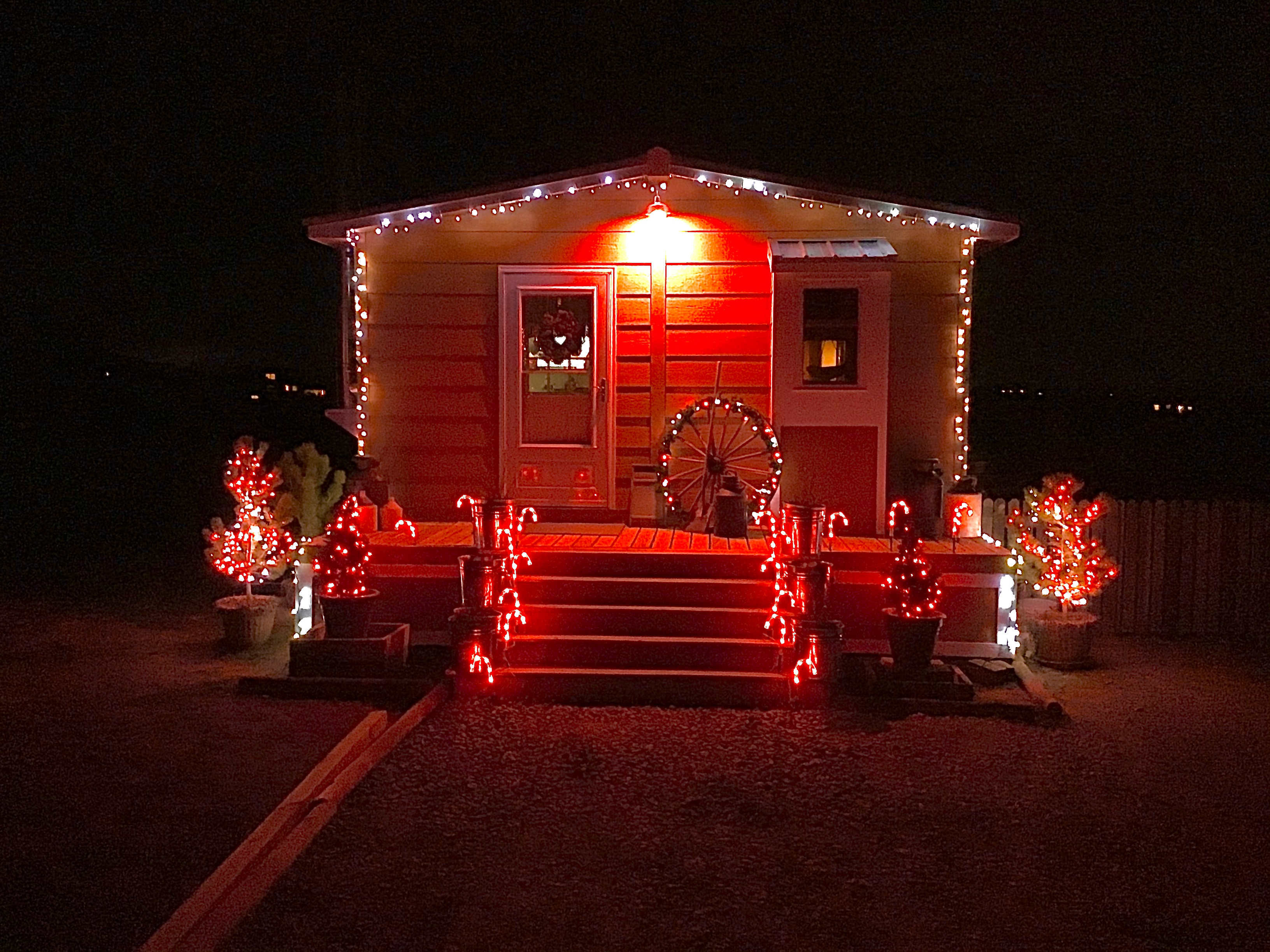 When we bought this house about 20+ years ago, there was this nice blue spruce in the front yard, about 20 feet tall. I could decorate it with a step ladder and a stick. As the years went on, it got taller. I bought a longer stick, 19' painter's pole. Then a larger ladder, 16' step ladder. Then I had to cast the last 6' over the top. Then I couldn't reach the top anymore without great difficulty. After injuring myself earlier this year, I decided I don't need to take the chance off falling off a high ladder, and probably wouldn't fair well if I did. So I figured out a way to do it from the ground, no ladders. It's somewhere between 45-50'. Enjoy!