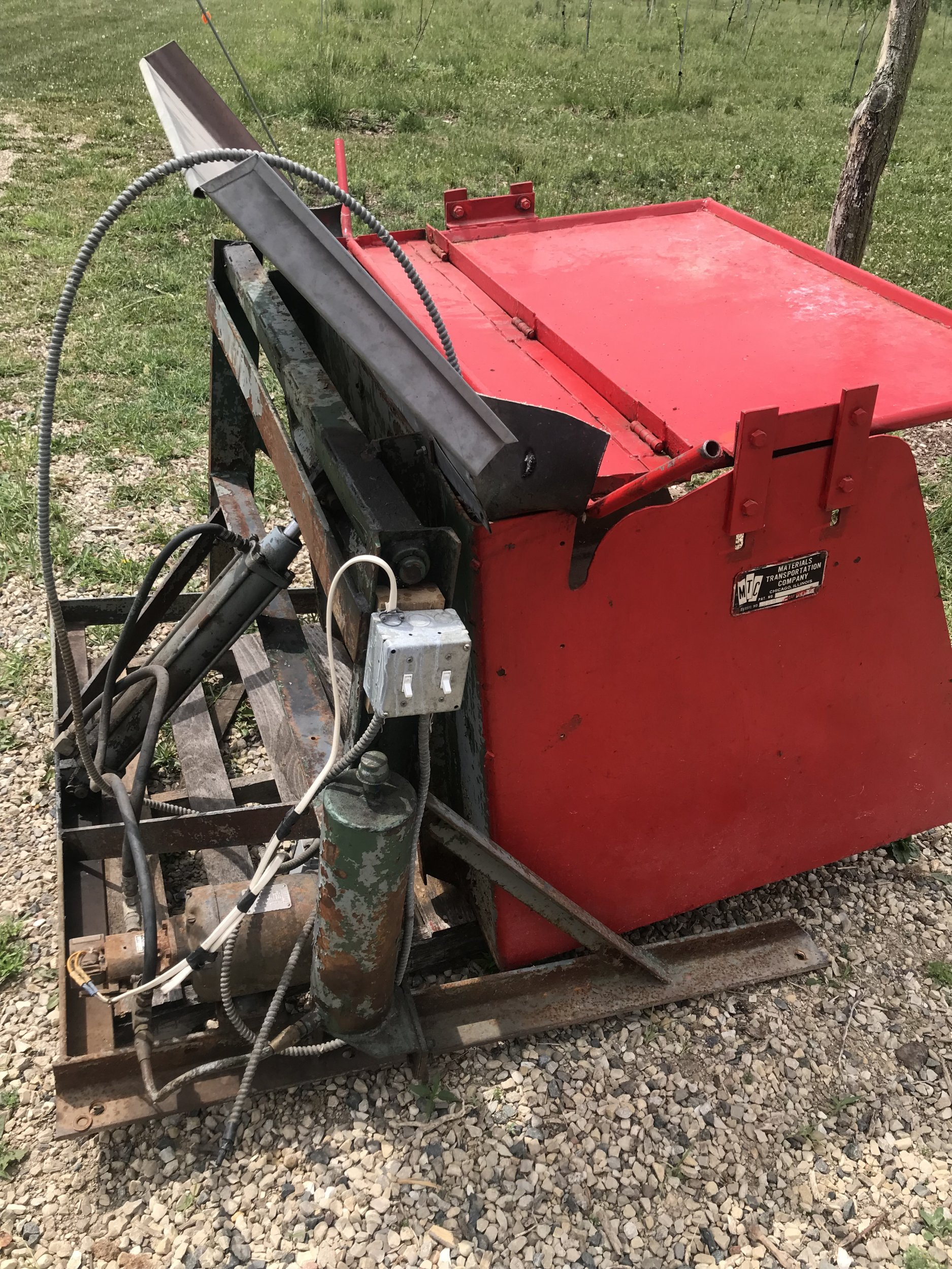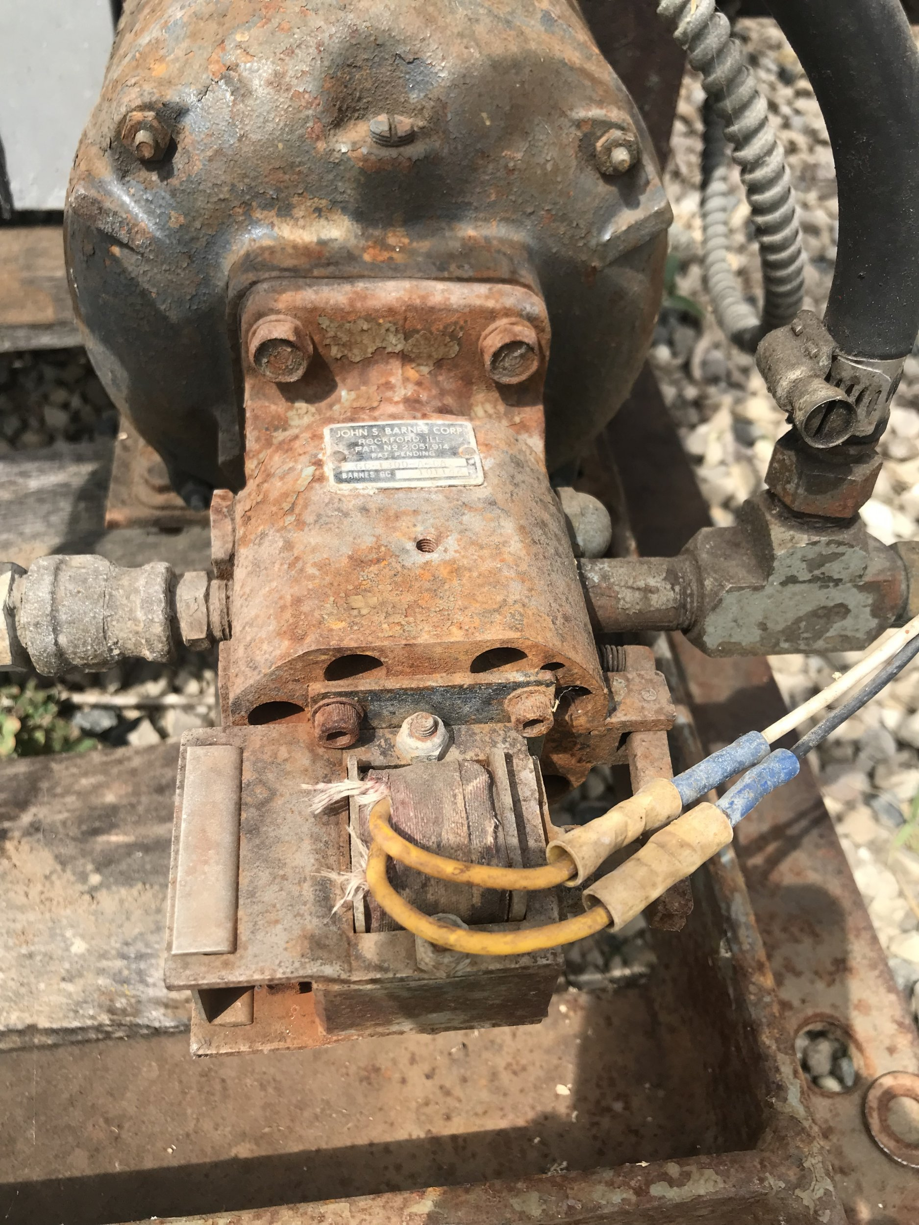 Below are photos of my bin tipper prior to its overhaul. The Romex is long gone, the house hold switches are gone and replaced with contactors and Allen Bradley switches, but I think you get the idea of what the system is. One picture is a close up of the pump and solenoid. Is there a way to do that to my current pump?