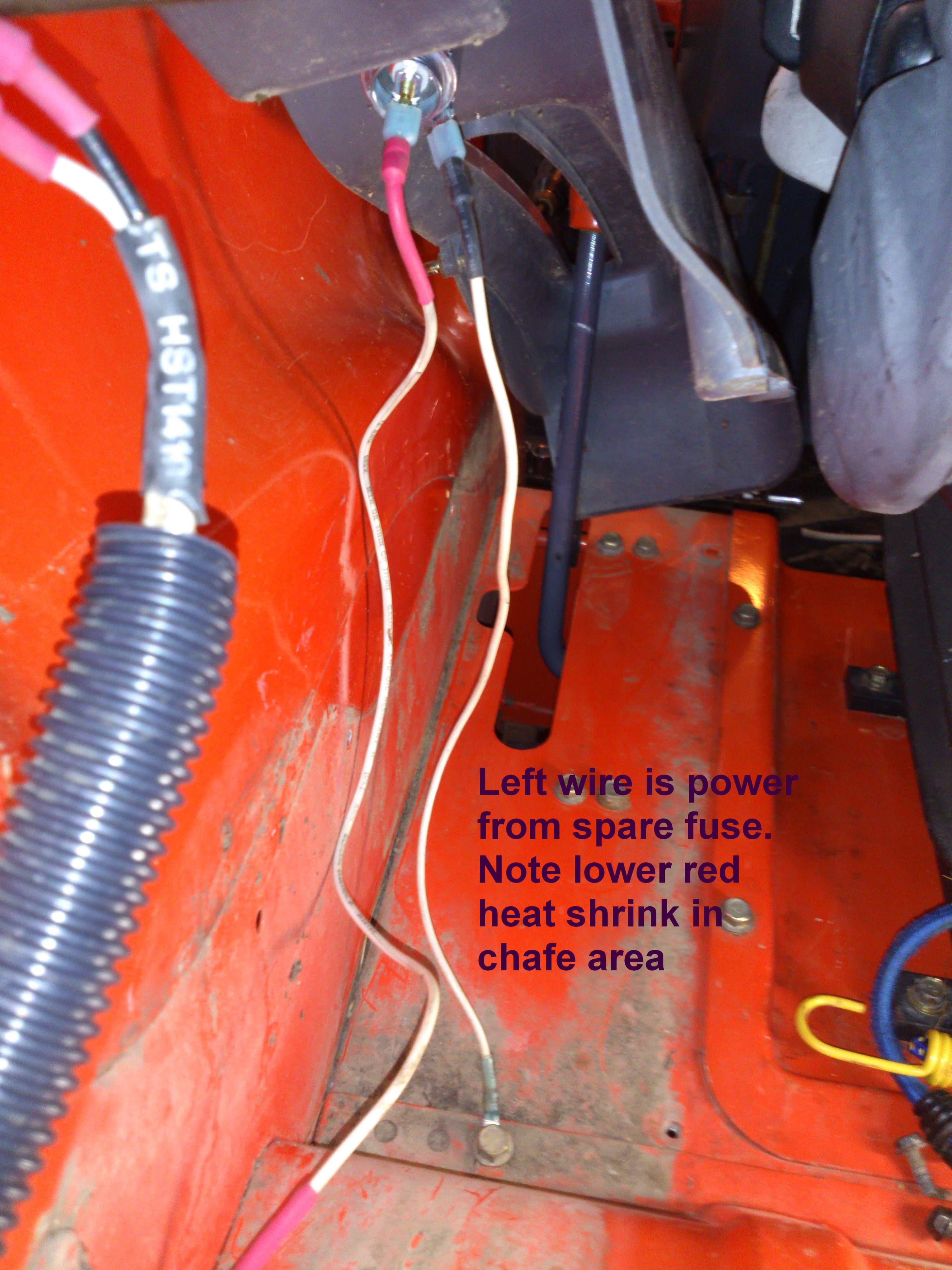 As far as wiring the power socket, I used the spare fuse on the fuse block. I used 2 small screwdrivers to press the prongs in to release unwired connector from fuse block. I crimped and soldered a 14 ga wire to connector and ran wire underneath the tractor following existing wires to rear and then under left console beside seat. I attached this wire to center terminal of socket. Then I ran a ground wire form outside terminal on socket to near by bolt that was threaded to tractor frame.