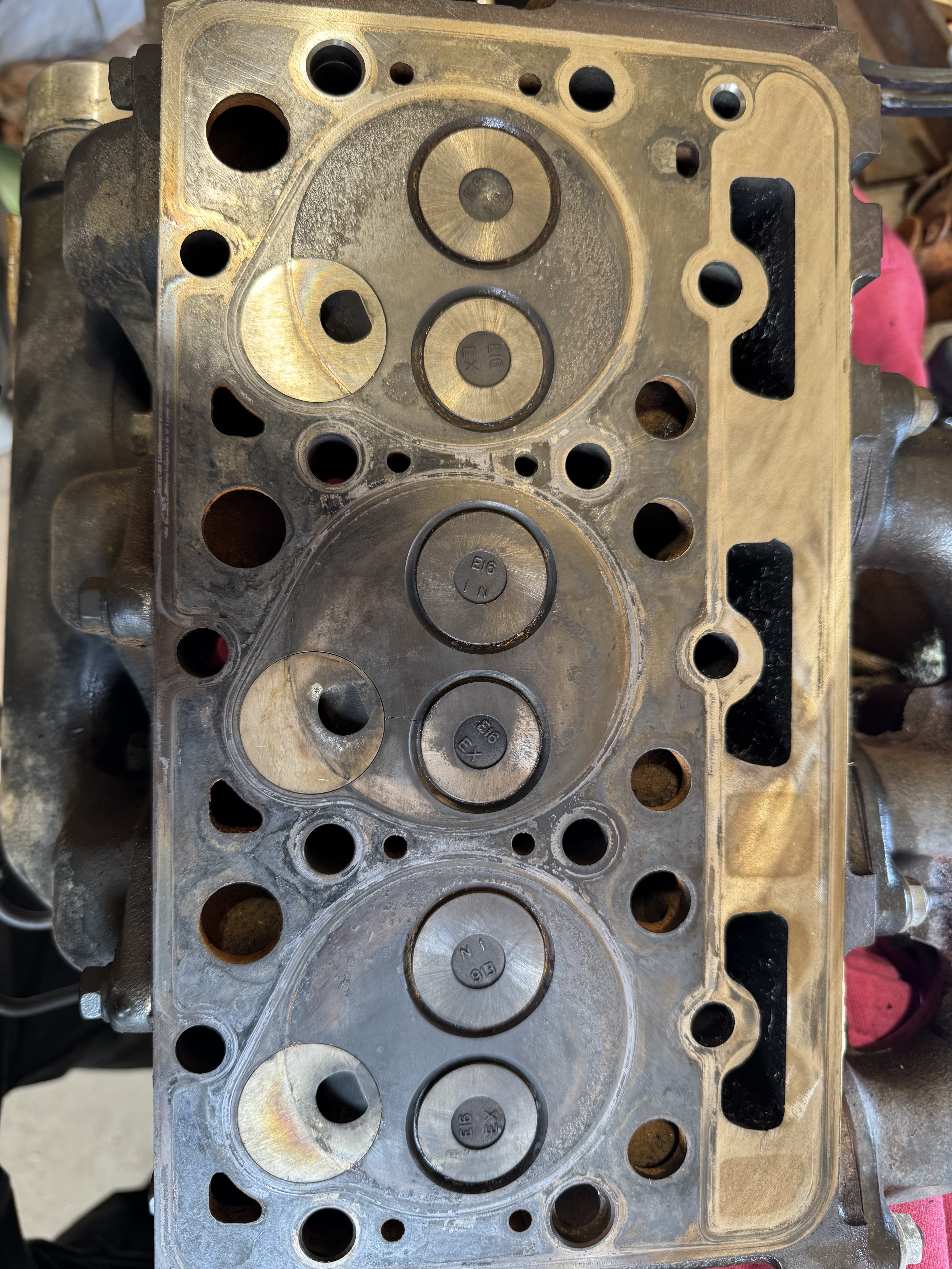 So after removing, fixing and reinstalling my broken rad I filled it up with coolant flush/ water and fired it up. No leaks from the repair, but there was lots if white smoke and the rad was bubbling like a boiling kettle! Shut the tractor down and called it a night. Went back the next day after work and found the coolant was low again and it was now hydrolocked. Checked engine oil, all good and no oil in coolant. Pulled glow plugs and spun motor which blew coolant out of cylinders. Took exhaust pipe off and coolant visible in manifold (see pic).