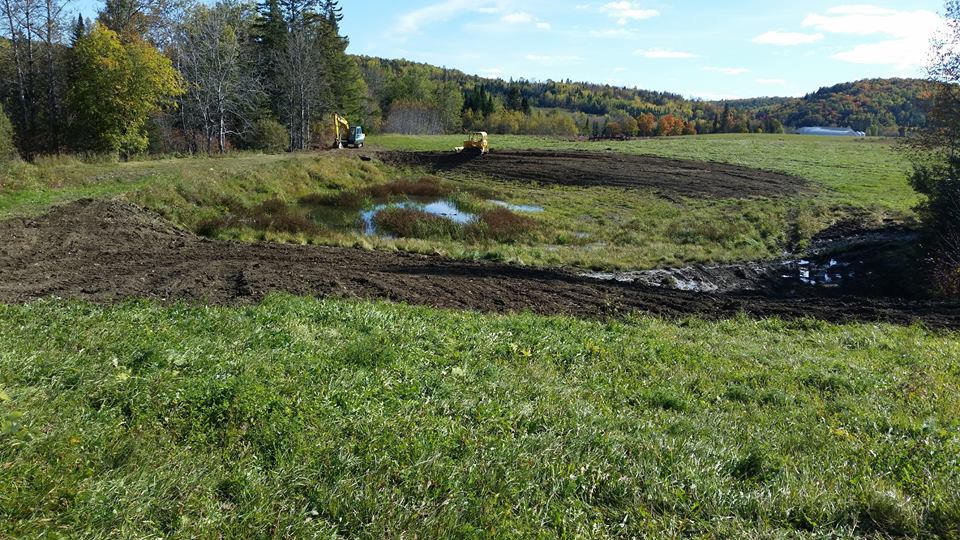 Plugged up the breach and installed a 15" poly overflow. Went down about 3 feet and sloped the edges. Set some stumps and logs along the bottom so the fishes have a chance with those pesky otters.