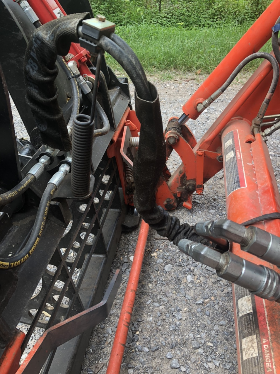 Spring for hydraulic line slack. Danuser Intimdator uses one too. Helps keep the lines from hooking on the ssqa levers and dragging the ground.