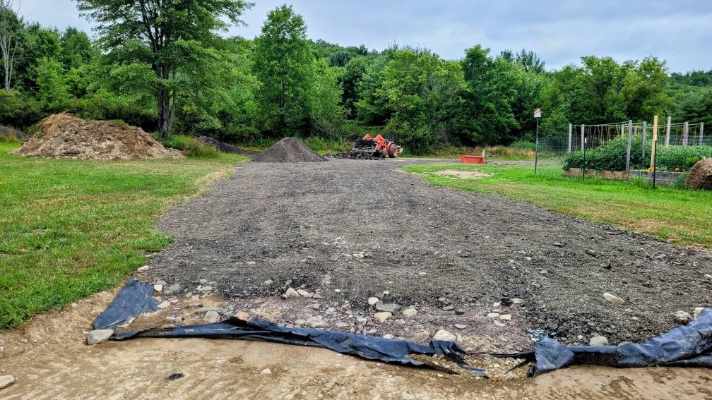 (Photo while constructing one section of the extension showing the layers - before final grading and compacting.)