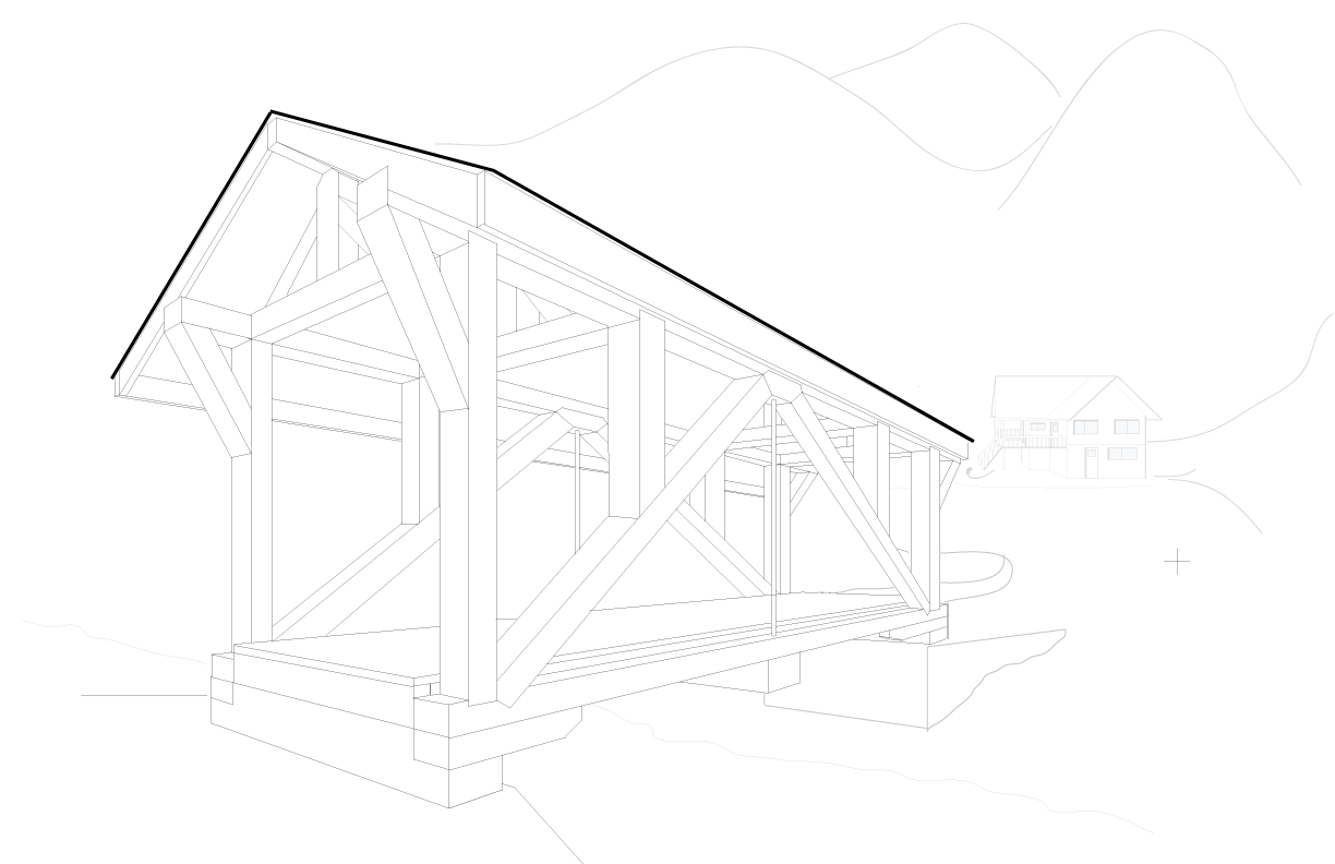 I've been a long time recipient of much useful information provided by TBN posters. Thank you all. For those amongst you interested in bridges here's one that I designed and built to access my log home which is situated on the other side of a year round creek. This bridge is a functional king truss construction, 30 feet in length, 12 feet wide. All of the timber for the trusses is reclaimed from a locally demolished theater. I had intended to use 6"X12" creosoted timbers for the road joists. Local fish and wildlife dissuaded me of this idea; bad for the brook trout. Eventually I settled on similarly dimensioned glue lams rescued from a nearby school that was upgrading some exterior walkways. The bridge deck itself is rough sawn 3"x9" fir and the bridge skin is composed of random width full 1" rough sawn tamarack (known around here as poor man's cedar).