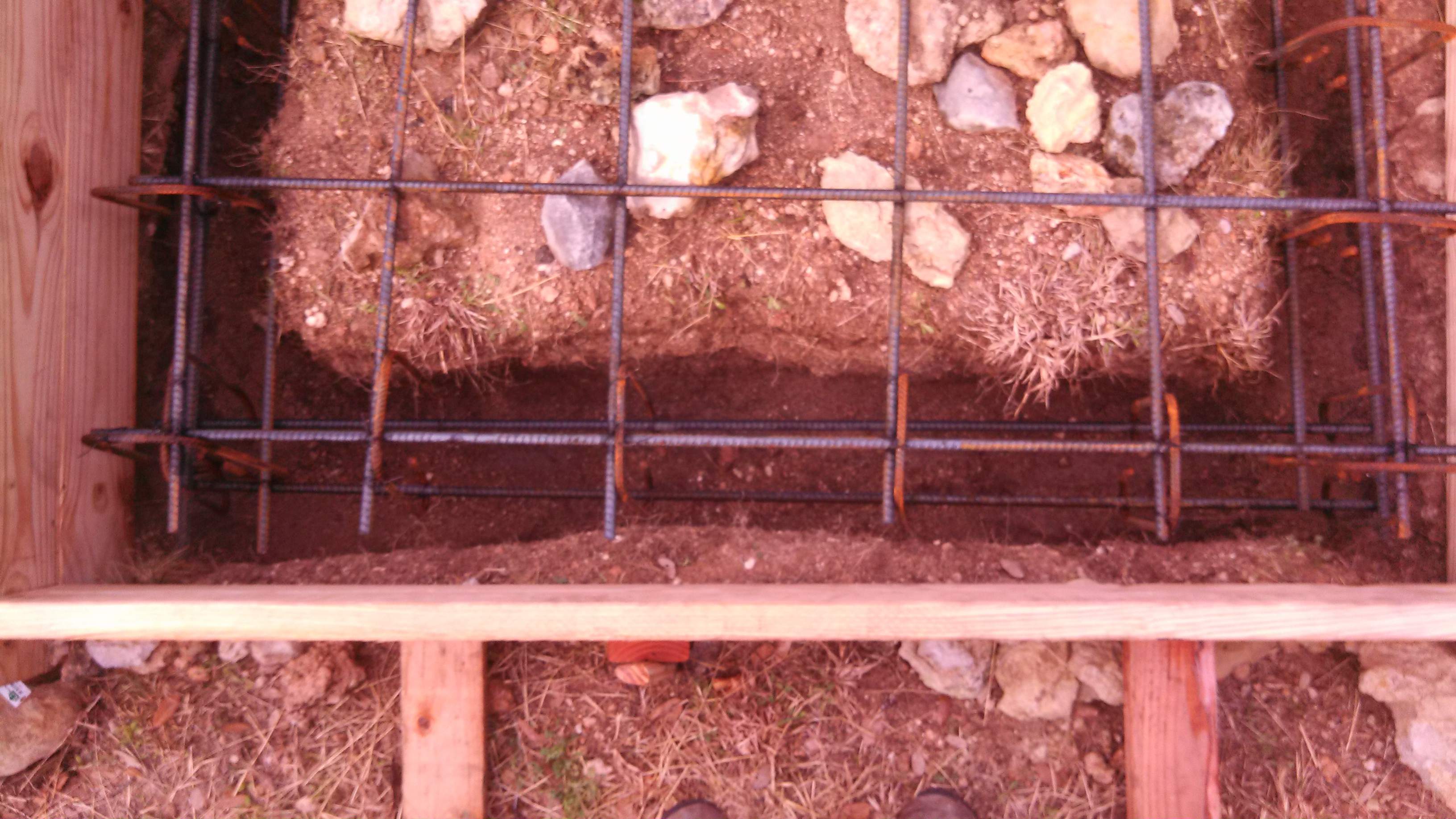 I finished the first level of rebar and am adding a partial second level no higher than 3" below the top of the form. I'll probably add a bit of gravel to the bottom of the footer, as I made it a few inches deeper than I needed to.