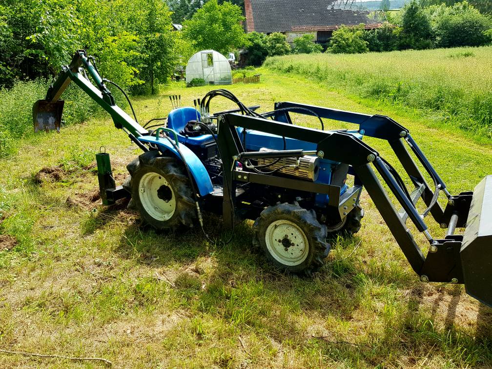 The project itself was finished ok, but i found that the combination of small tractor and also small back-hoe is just too light to do real work in heavy, dense ground. A pile of sand is easy enough, but to dig a 1 meter hole in the dirt we have here is not as easy as i thought. Even when i put some extra weight in the FEL, it's still hard to get the spoon into the ground really deep. I will try to find some photo's of how this thing looks...