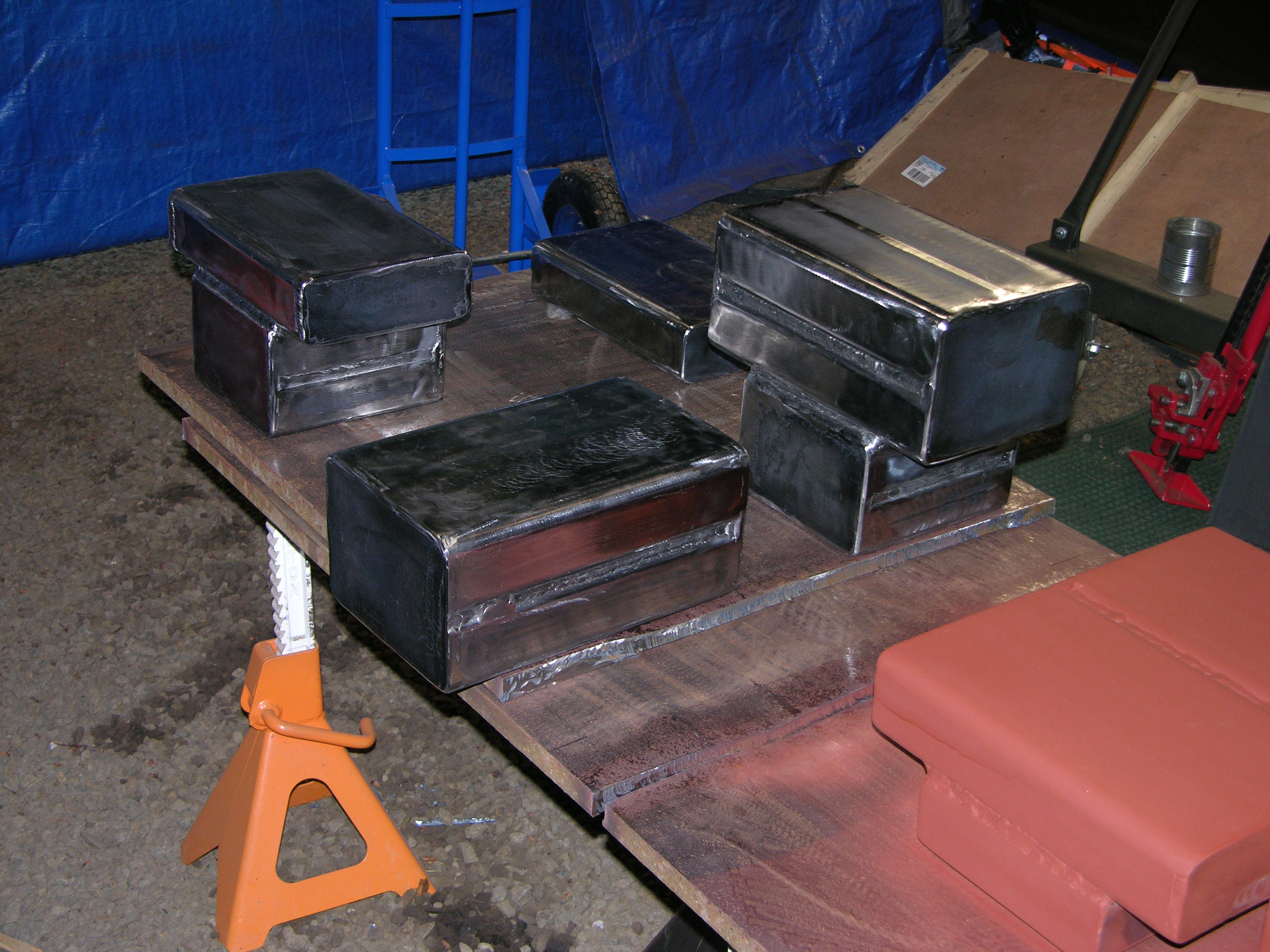 I haven't got around to playin' with 7014 stick yet, but DID get all but a few minor "touchup" welds done on the last 4 pyramid support blocks for the (hopefully soon to be moved) containers - DSCN3376.JPG - also primed the first two - DSCN3377.JPG They're sitting on 3 of the 180# base plates that'll be under them - DSCN3378.JPG