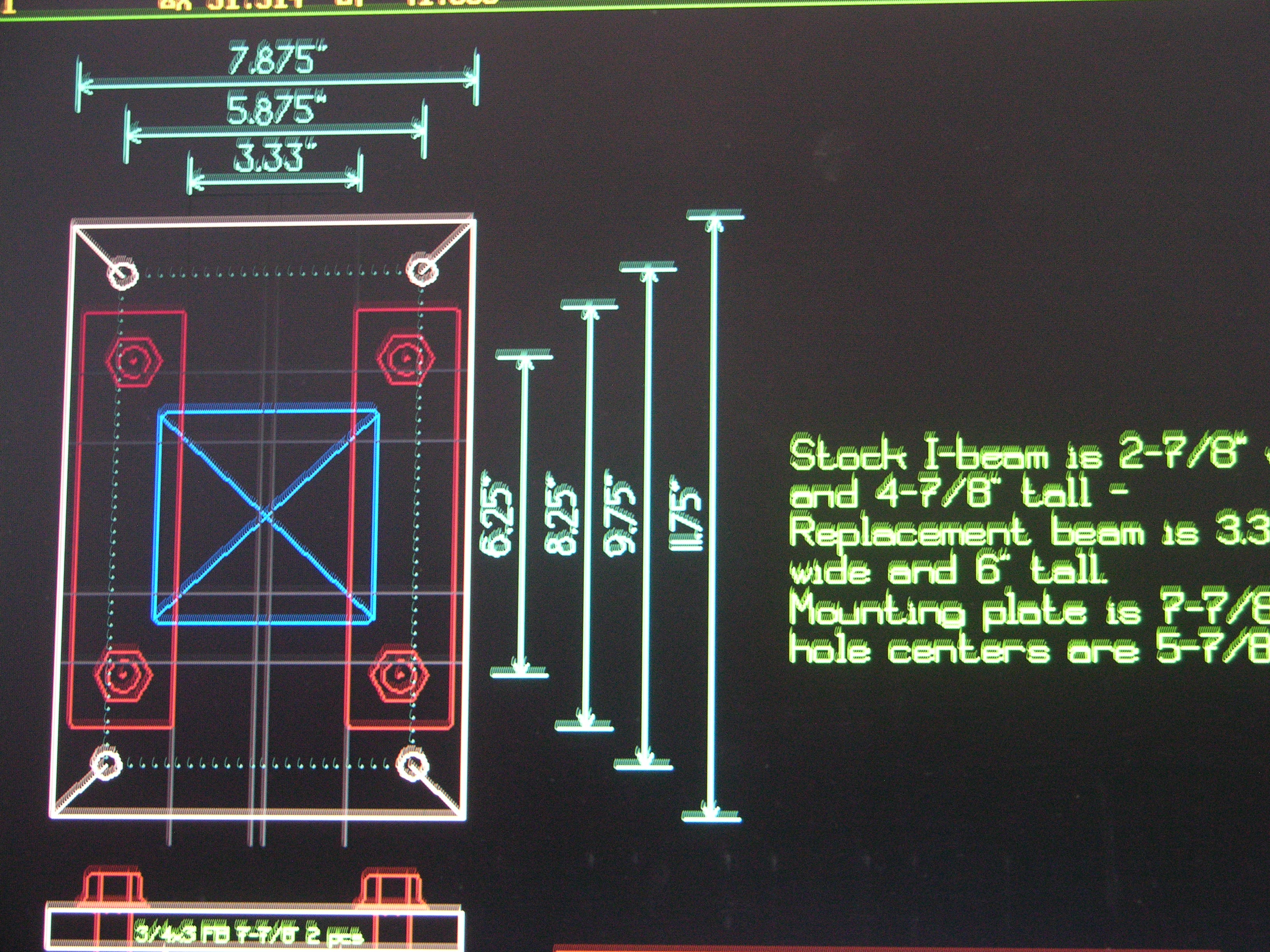 The way I'm doing the new beam mounts, they'll be able to lock down ANYWHERE along the I beam - the stock ones have plates welded to the I beam with 4 holes that bolt onto each post top (with another 4 hole plate welded on the posts) -