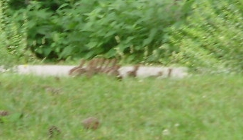 A couple of terrible shots of about 2 dozen turkey chicks (hidden by fence board) with momma this morning, just about the time I was hoping to get a good pic of them a red tail hawk flew over them and the hen took off flying after it. She flew hot after it for about 500 yards to the creek before she returned and called her chicks into the brush across the road. I knew turkeys could fly but I never knew it was for the distance she did and she flew quite well for a bird of her size.