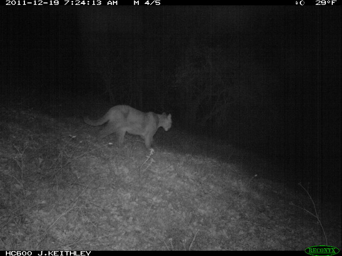 We had cougar scat in several places on our property 15 months ago. Been working on clearing out the undergrowth below our trees to change the habitat for the cougar and it's prey. Cougars are supposedly ambush critters, rather than pursuers, so removing trees or large limbs or underbrush where they can lie in wait makes the habitat less useful to them. Once I started running chainsaws in the woods, we stopped seeing fresh scat, but it will be back.