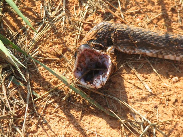 We have them here too as well as copperheads and rattlers. Our snake books say we have rattlers but in 6+ years I haven't seen one. I have shot two snakes in all this time. One a suspected cottonmouth swimming toward my wife in a pond when I just happened to be target practicing with a pistol when I heard the scream. A guy helping me repair a fence said look, a copperhead! Well when working in snake territory I change out my magazine with hollow points for one with shot shells in my baby Glock .45ACP. I blew it away before inspecting it and there wasn't much head left afterward as it was quite close.
