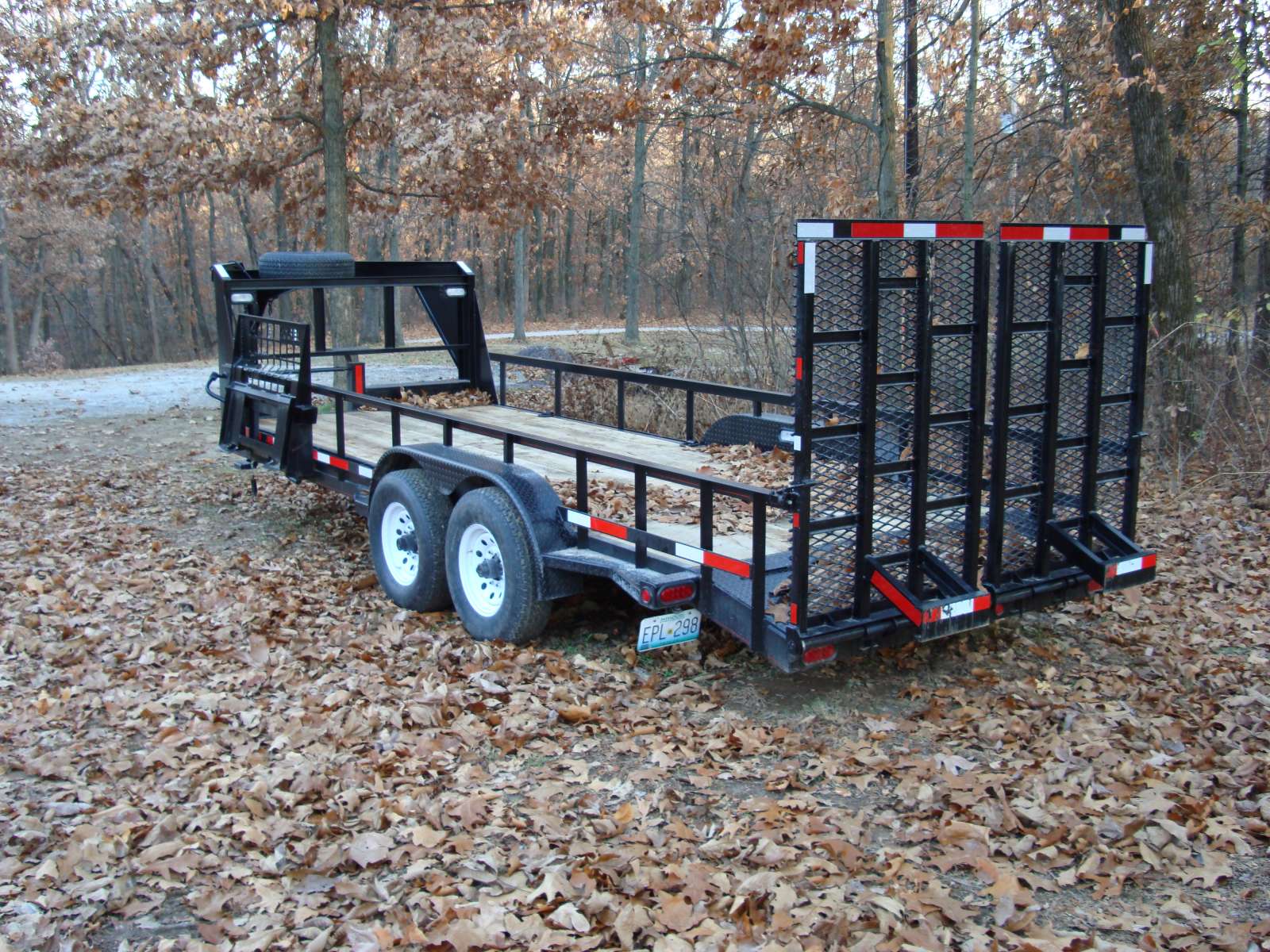 The trailer is an 18' + 2' with a 2" oak floor and tandem 7,000# axels. The dovetail is made out of diamond plate steel with traction bars. There are two 5' heavy-duty spring assisted mesh gates on the back of the trailer. The fenderwells, toolbox, battery box, and light enclosures are all made out of diamond plate steel. There are white lights built into the fenders and on top of the trailer which are activated by a toggle switch. All lights are rubber mounted and fully enclosed. The rear-facing red lights are L.E.D. There are fork carriers on each side of the trailer and six weld on D-Rings. I also had a B&W Turnoverball Hitch mounted on my truck.