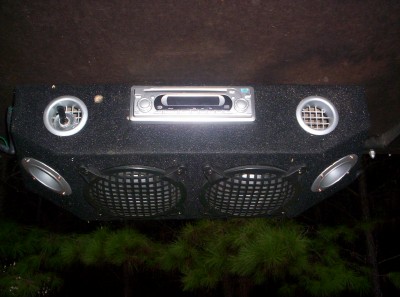 I'm new here but wanted to start sharing some of my projects. Here are a few pics of the radio/speaker box I have mounted on my JD 4300. I got the idea out from my dealer who had the same set-up but wanted 139.99 for it. This one cost me less the 50 bucks. I got the speaker box from Fred's for 14.99. I don't see how they build stuff that cheap. I know it may fall apart in a year from now, but for 15 bucks who cares. I cut the hole out for the radio then mounted it to the canopy. You really can hear the radio good and still hear everything that goes on around you when you are playing; I mean working....