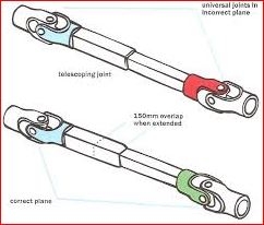 That's right, and most shafts that look square probably aren't, they may be 1" by 1 1/8", so that they cannot be assembled out-of-phase. If somebody modified a shaft or yoke to make it work, that could be part of the vibration problem and if you need to replace the shaft or yoke, most good machine shops will have the correct dimensioned shaft stock or yokes to make it right.Kodiak45, while you have it apart, straighten out the metal cover, your ears will appreciate the effort.