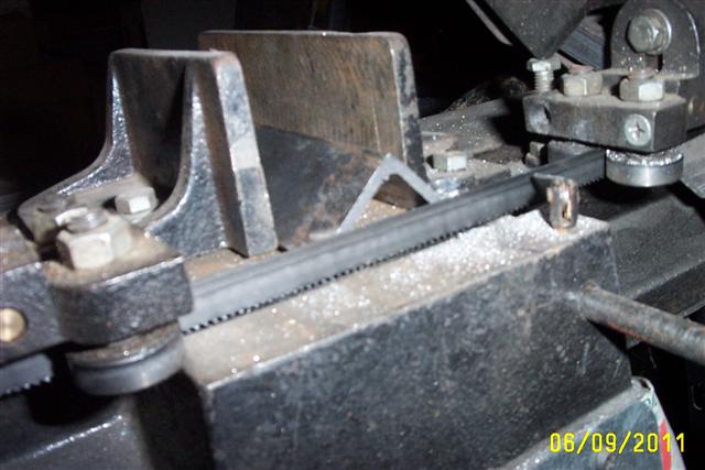 Problem with that way is the under surface of the angle on the side to which the blade is travelling is at an angle that makes the "hook" of the blade teeth tend to catch. Same type of thing on sawing angle with the open side down on a vertical saw freehand table. The piece is very stable, but the blade wants to catch after it crosses the peak. In that case, cutting the 1st flange flat and then rotating the second flange down to the table as the blade gets to it works well. In the band- hack saw tho the metal stays in the same position thruout. Considering that downforce is constant there may be no really good solution. If the angle were oriented upright the cutting area would change hugely as you reached the bottom flange and downforce could use an increase. Probably would work OK in that position tho at whatever downforce was right for the upright flange and just add a little manually when it gets to the bottom one.How do you guys cut angle in your bandsaw? It seems to cut more square if I lay both sides down in the vice, but it wants to jump out of the vice unless I push down on it with a stick.