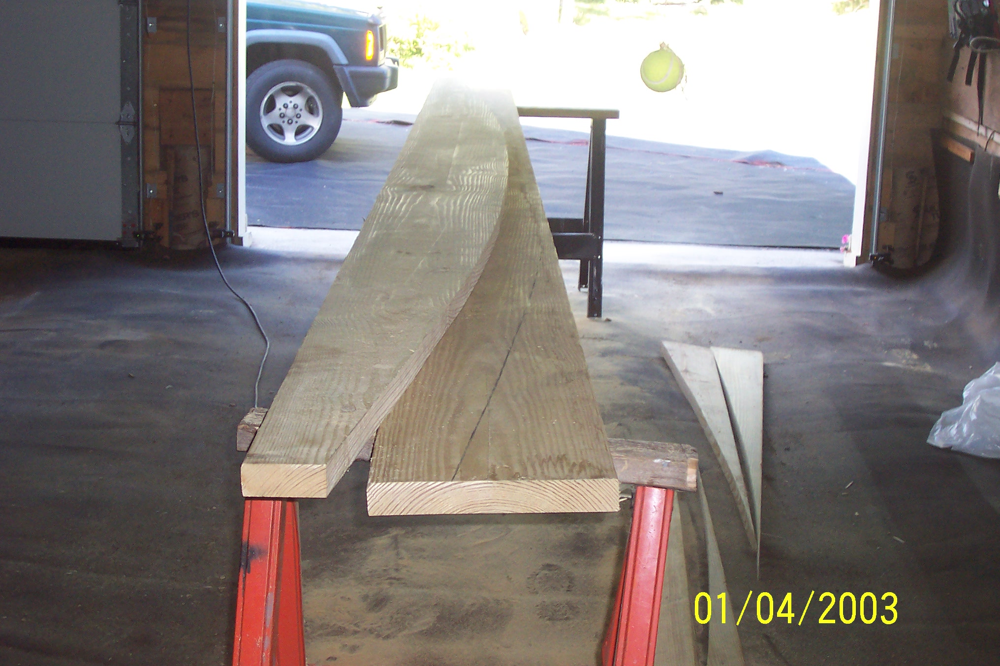 Thought id post my kids bridge,turning out to be quite a carpenter for 16 years old.First pic is ofwhat was left of the old rotted bridge we had.Imade it from bowed timbers from work.rotted quick.We use the bridge for foottraffic mostly,or lamnmower atv etc