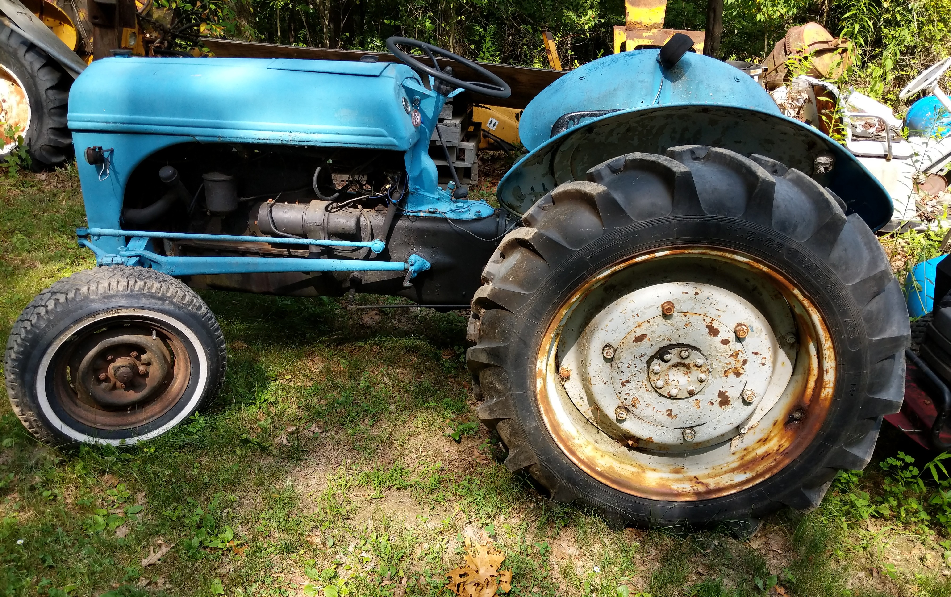 I didn't get to putting them together yet, other projects took priority. But as for photos, here's the tractor, & yes it was that color when I bought it. I would never do that to a classic. I always hoped to get it back to dark grey, but the mechanical side was more important. Speaking of which, she fired right up first try, even after sitting for a month.