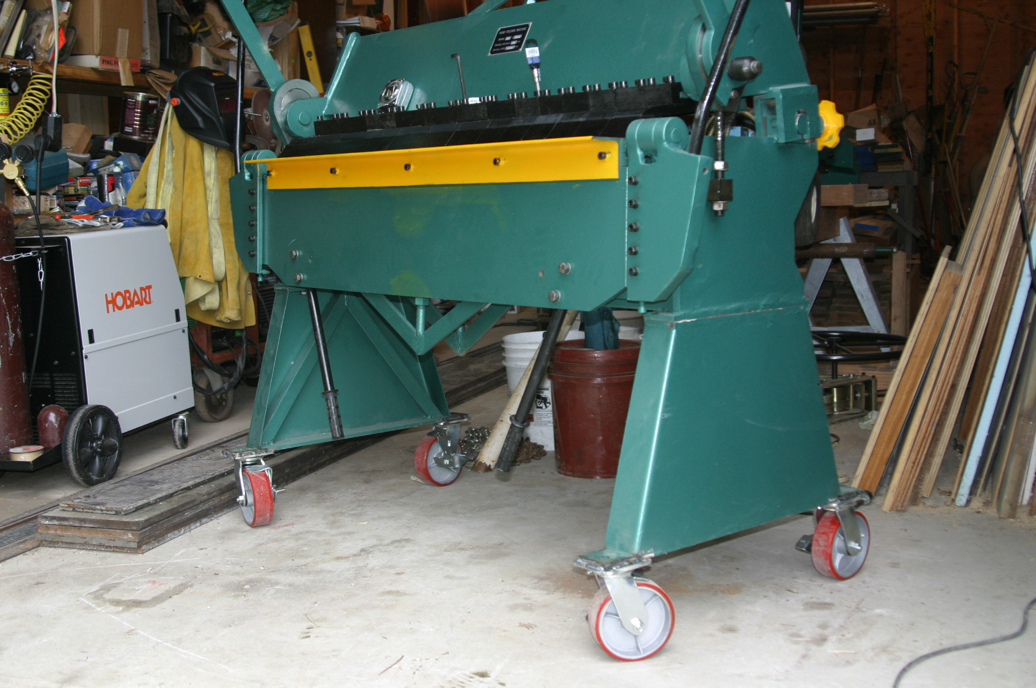 It's supposed to be 1500# shipping, so I figure about 1400. Seems to work fine, not much to them. I've done a lot of alum bending, but this isn't much like that. Heavier action, but with the 20 ga. I couldn't even feel resistance. Ordered this today: G5772 52" Sheet Metal Shear