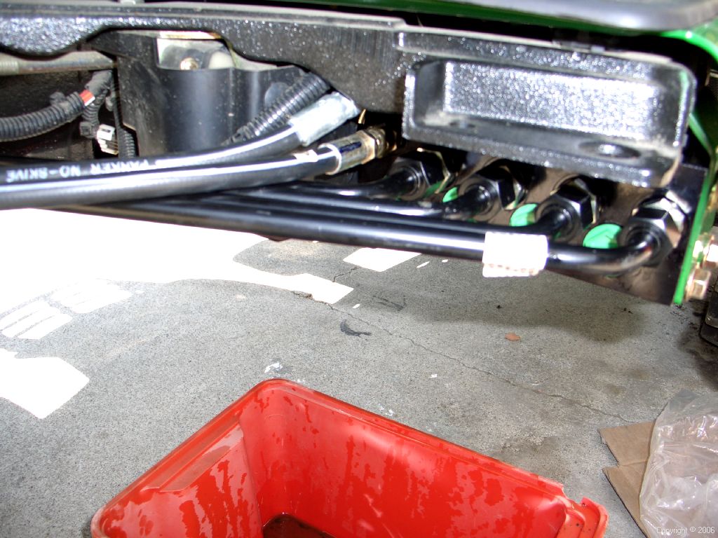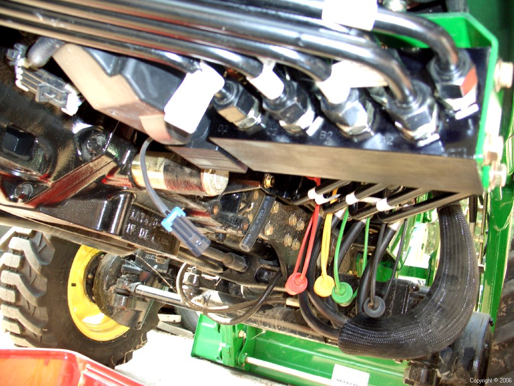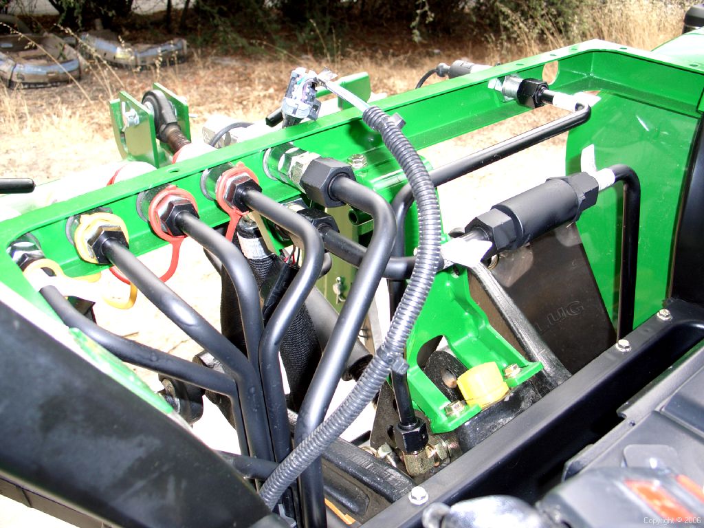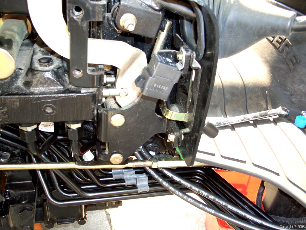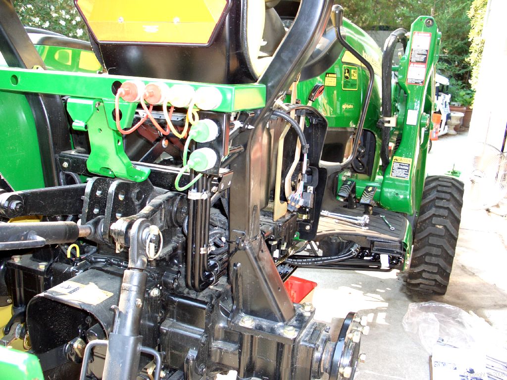 Re-installation of the removed parts (fenders, etc) completed the installation. The attached image shows how your tractor will look when opened up for accesibility before reinstalling fenders, control pod, and wheel.