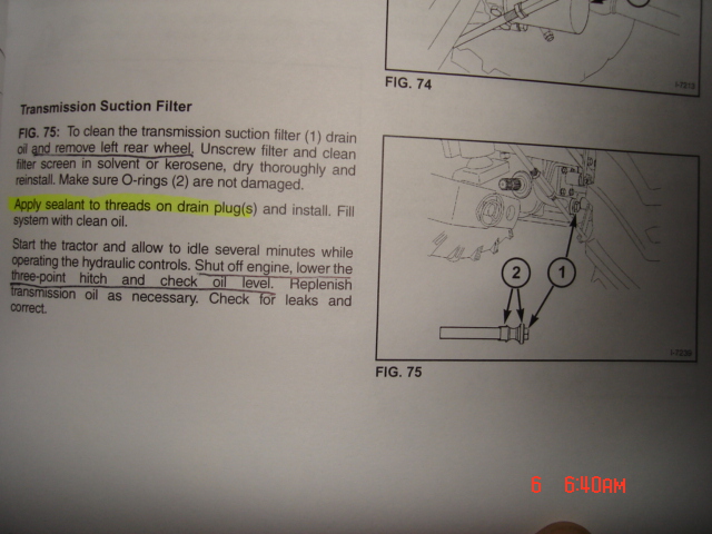 Hold the picture up. Note the spline for the mower PTO, at the top center of the photo. Find that spline, on your tractor. It faces the front of the tractor, on the rear end housing. To the right of that spline in the photo, note the position of the suction screen, in relation to the spline. It's in the same place on your tractor.
