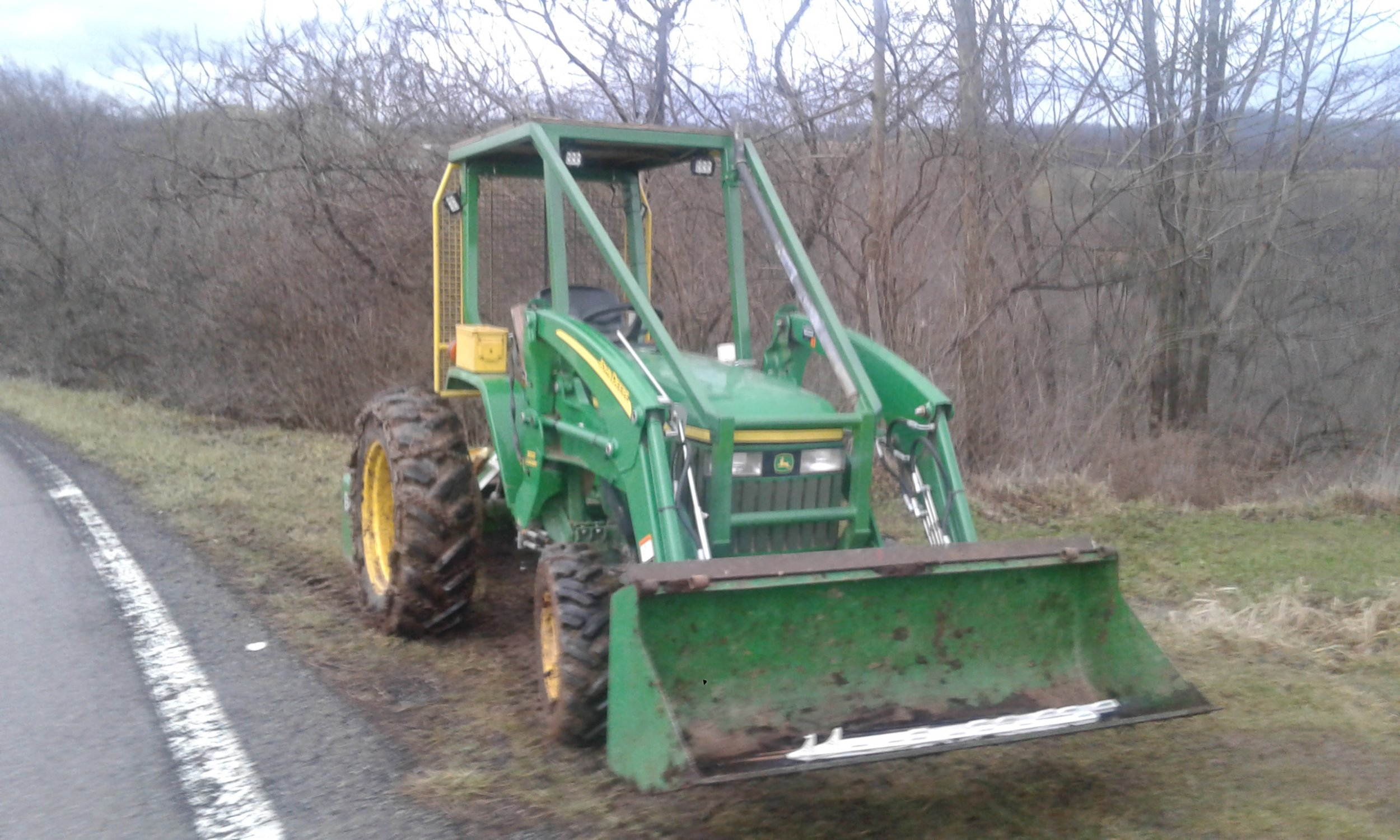 Extra ballast out back is mandatory, I have forks on the loader 98% of the time. I put anything I can on pallets or in IBC tote cages. We recently moved to a new farm, I've got 14 of the cages in the barn waiting to be unpacked. They work great for firewood under normal circumstances.More than once I've seen a branch coming and wished I had something other than my arm to deflect it. lol I see you've added weight to the gannon too. That definitely helps them cut. My old Terex had a 1000 pound box that sunk like a stone in water on most material.