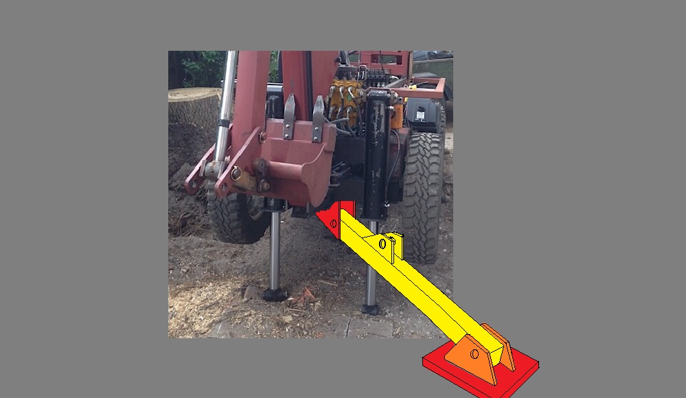 Unfortunately I didnt plan the layout very well and ran out of room by the time I got to thinking about the outriggers. The leg rams sit within the two vertical channels and really should have been spaced as wide as the wheels but it would be a major job to start again. So the plan is now to have horizontal extending legs each side mounted on pivots behind the rear differential and spanning out diagonal as wide as the wheels with the rams bearing down on them at mid point. The rams move in a fixed plane up and down so the legs will have to extend (telescope) between the fixed pivot end and the ram mounting point. That is a job for the summer when I strip it down for fettling & paint.