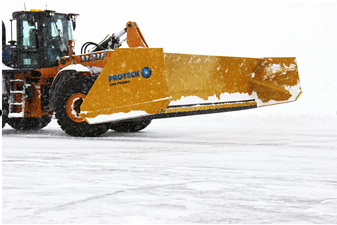 I split the difference between pusher and plow by adding wings bolted to my standard plow (which also trips). For smaller snows I use the wings, and take them off when I need to plow normal.