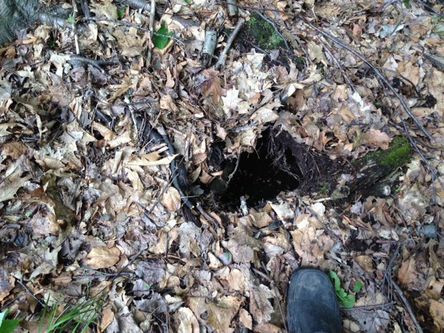 The area of the sinkhole. The hole in the center is where my foot went through.