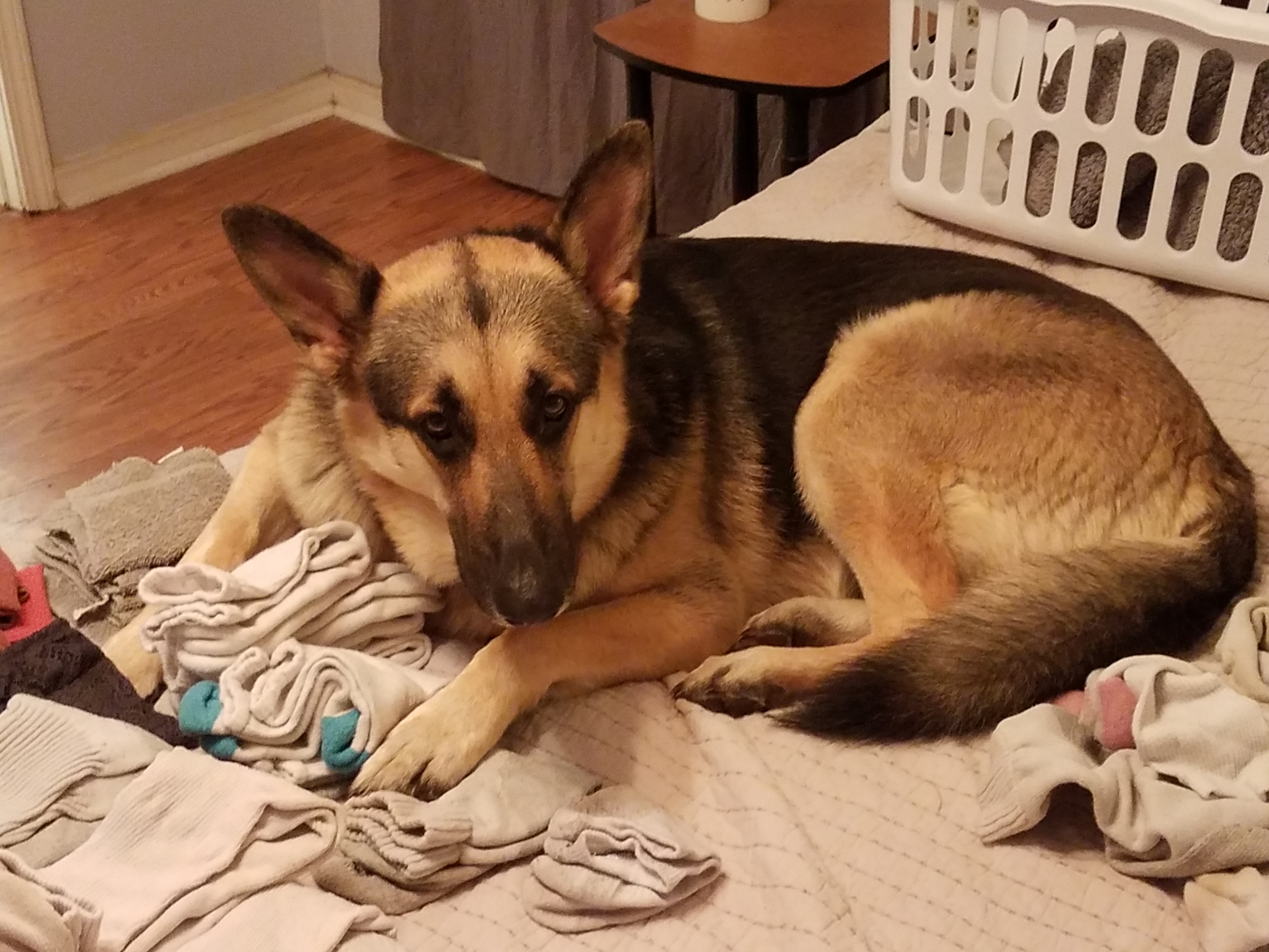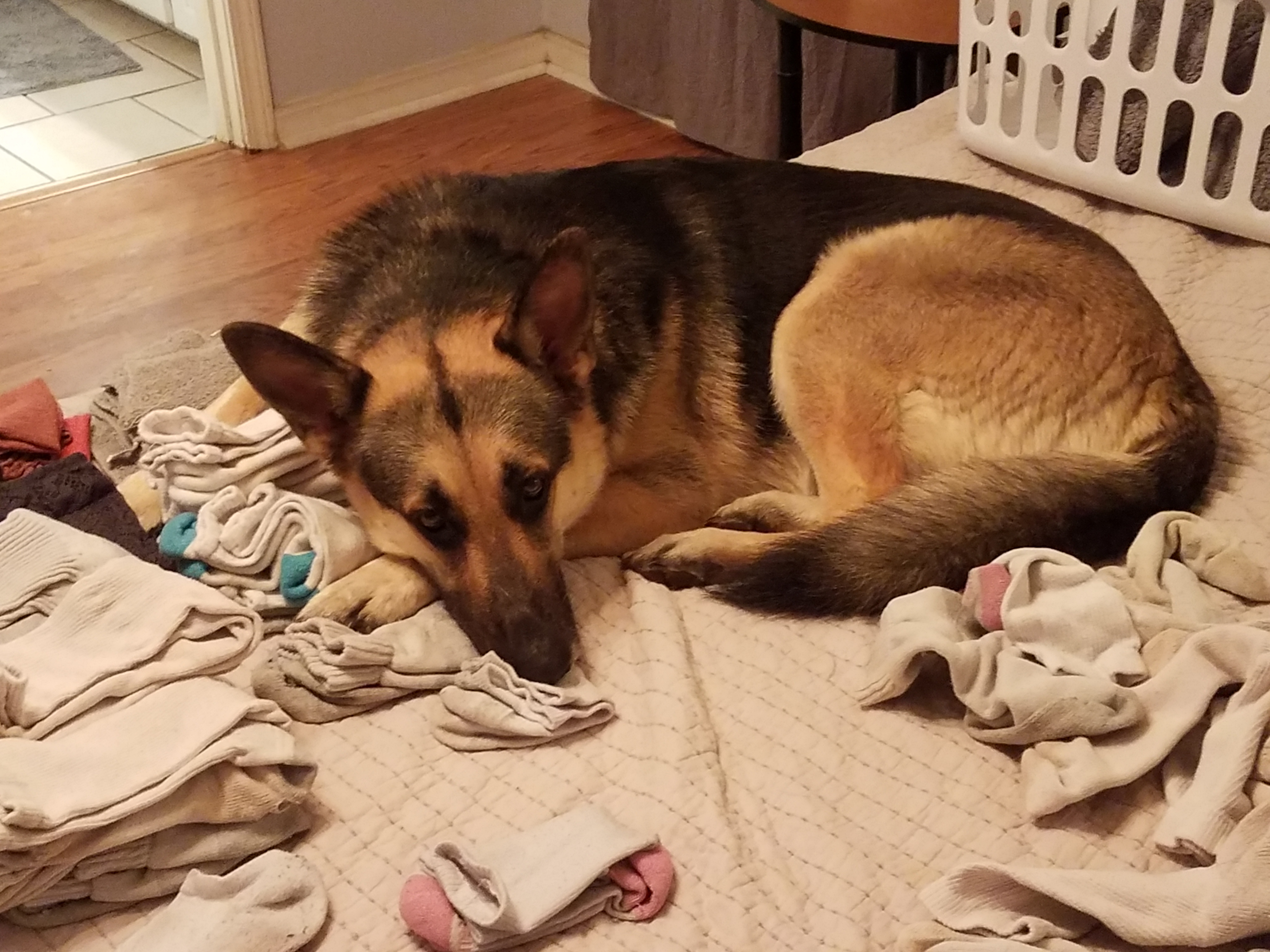 I honestly think she's trying to tell my wife enough on the laundry, it's time for bed![]()