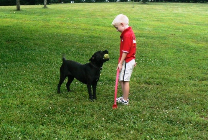Back on track, an older pic of one of my nephews playing with one of our dogs...