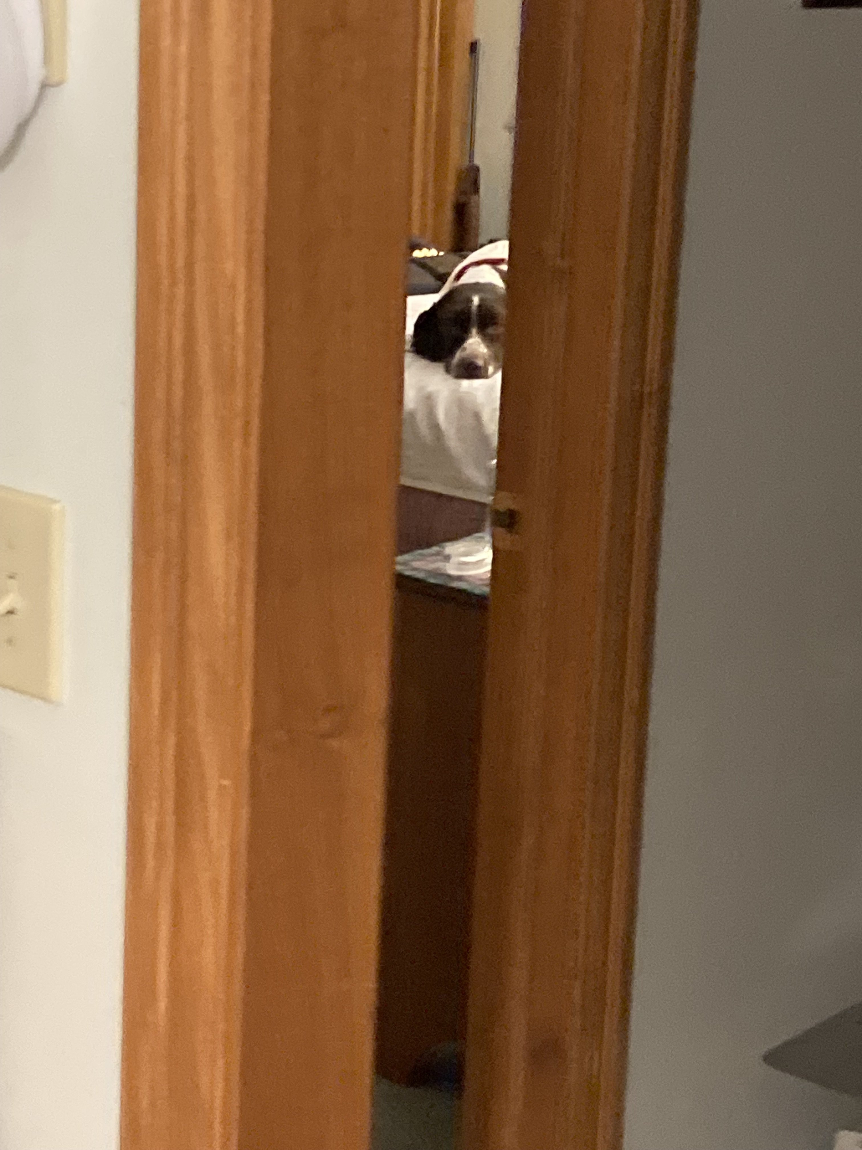 My Springer Spaniel used to carry her bed around and follow us in the house so she could set up camp and keep an eye on us.
