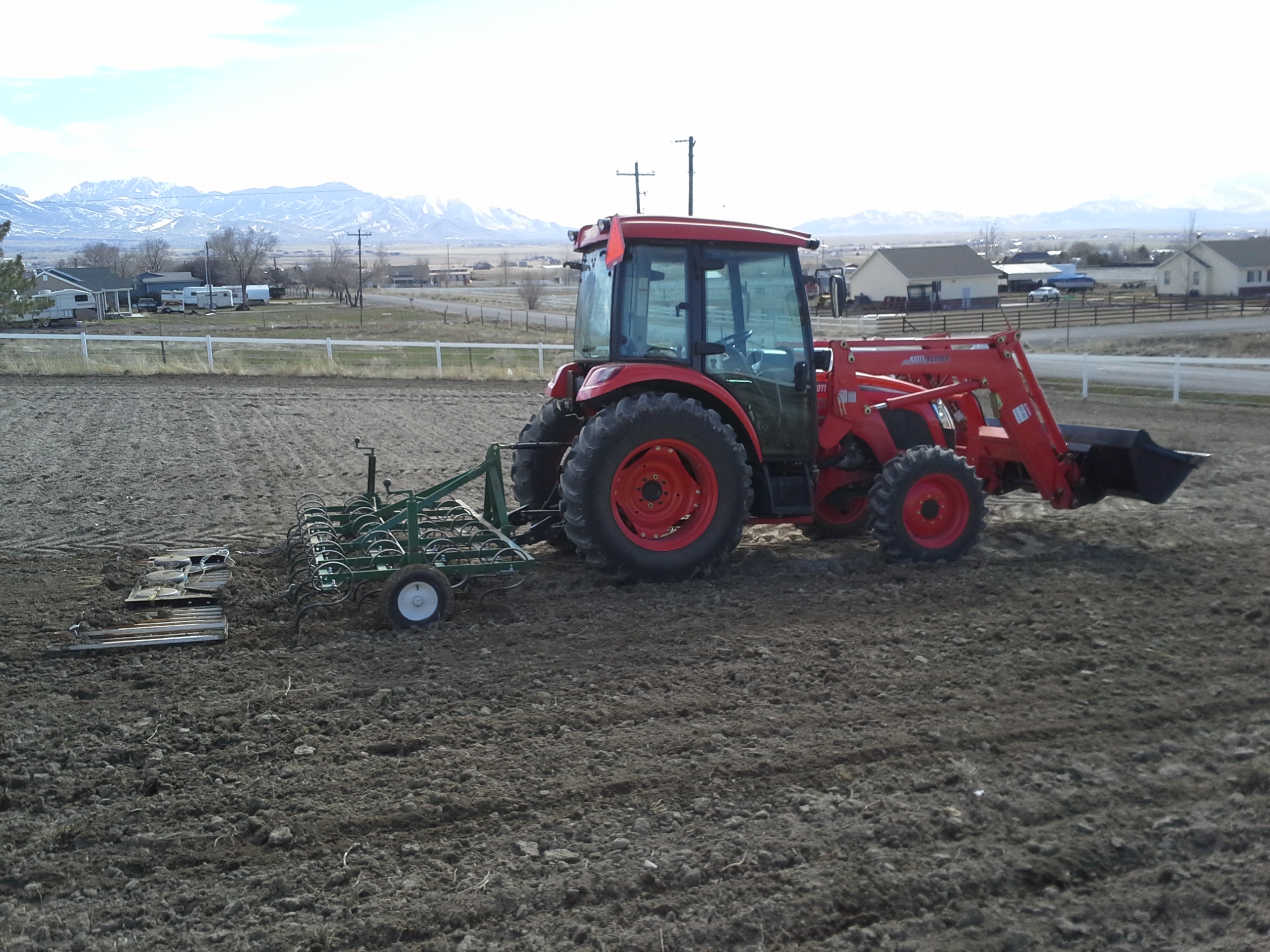 Well made the first pass with the drag harrow yesterday and I got to thinking there hast to be a better way to add weight. I current used some concrete blocks and a couple of short fence posts wired to the top, but one never fails to undue itself. Its just one of those 3'x4' spike kind that you can attach either end to the drag bar to get different effects.