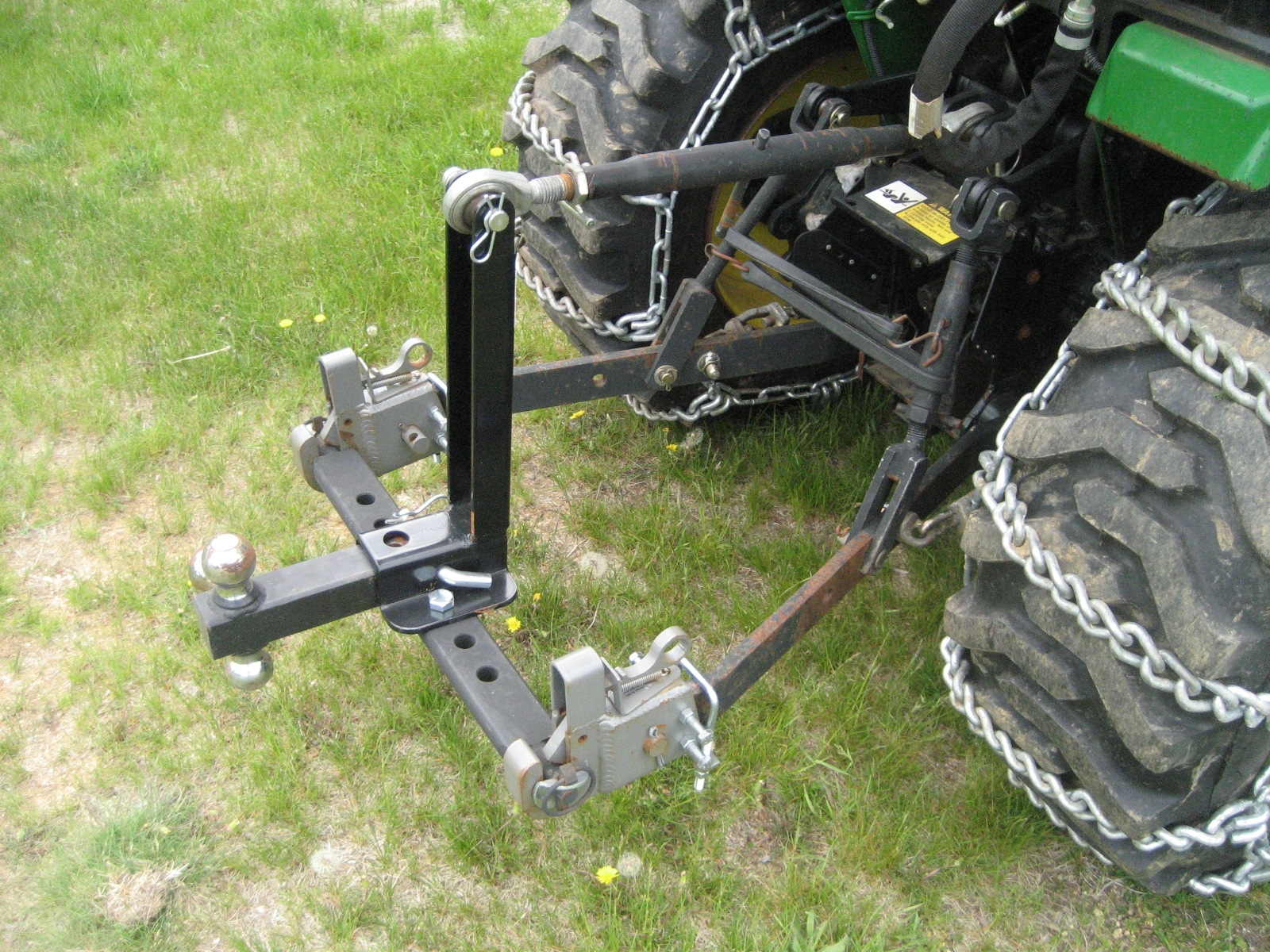 While 3 point hitches are handy and versatile they do require one step often over looked, a chain or other travel limiting device needs to be used to prevent trailer loading from lifting the drawbars and raming things into undesired locations such as fender and fuel tanks.